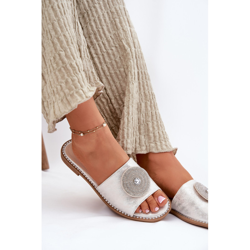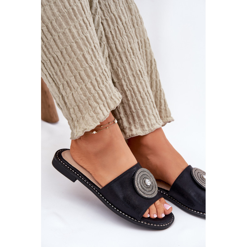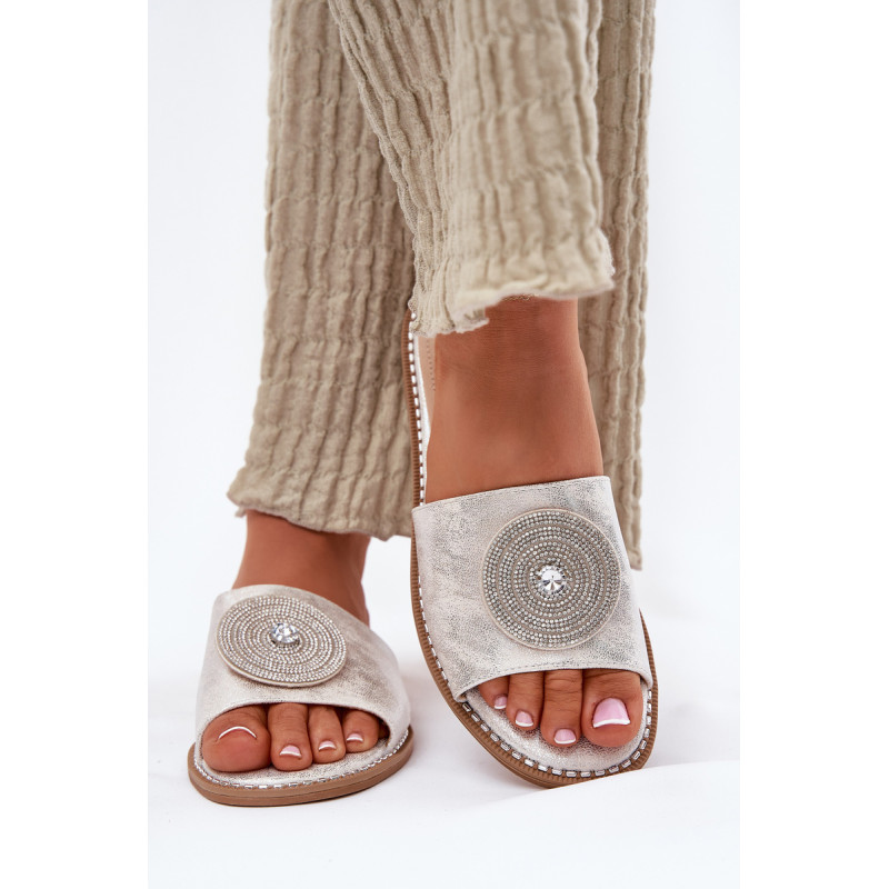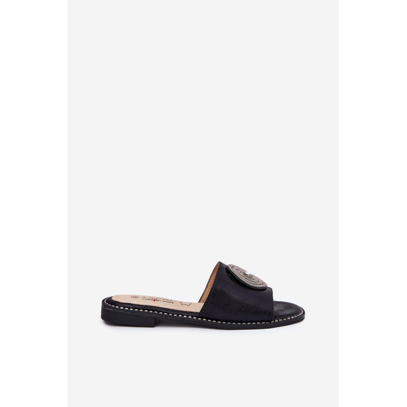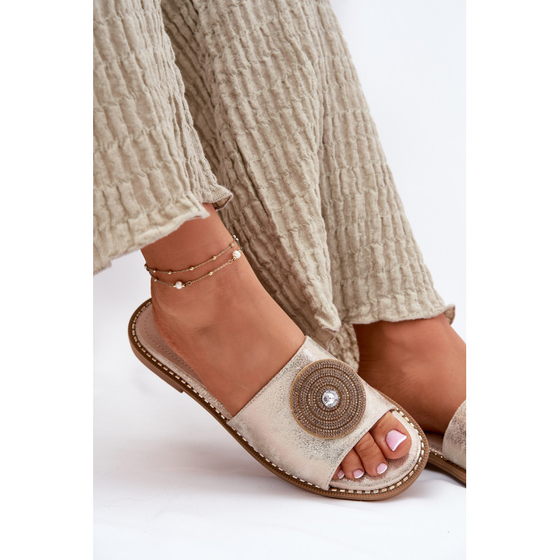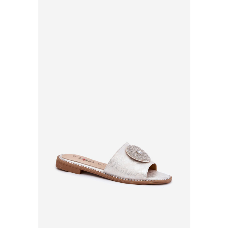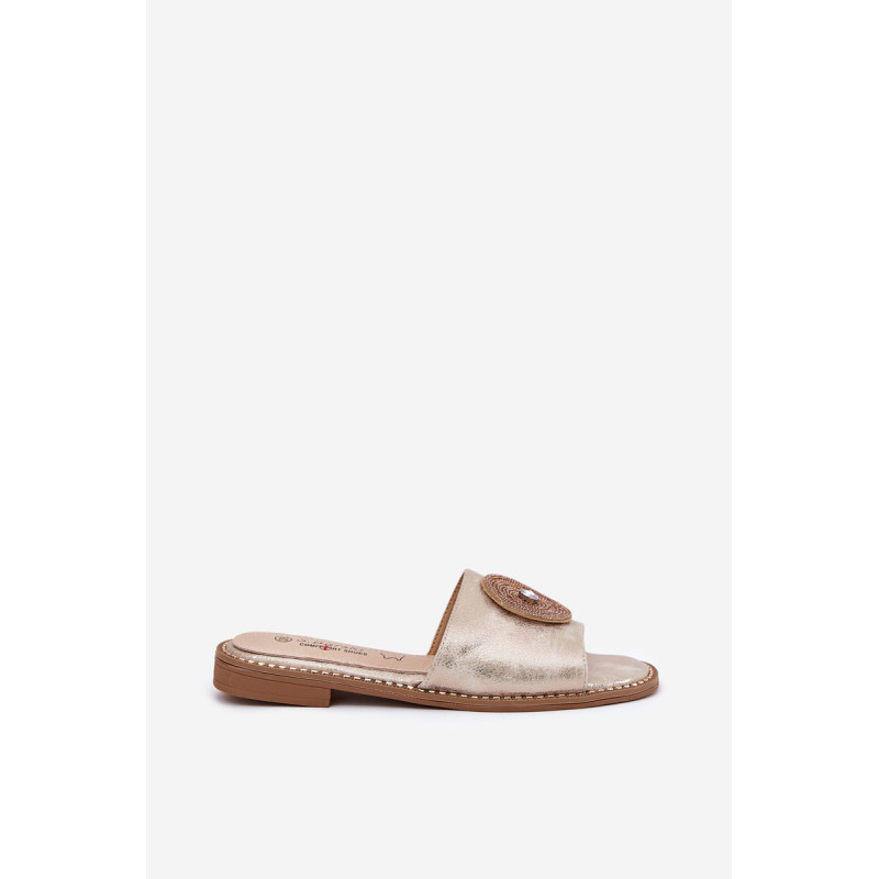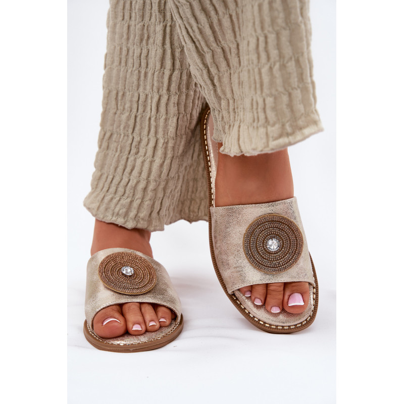 Eleganti moteriški šlepetės, pagamintos iš aukštos kokybės eko odos. Įrengtos ant plokščio kulno, jos užtikrina stabilumą ir komfortą visą dieną. Oda įdėklas garantuoja komfortą ir tinkamą ventiliaciją, rūpindamasi kojų patogumu net karštomis dienomis. Priekyje yra dekoratyvinis elementas, kuris suteikia unikalaus žavesio ir elegancijos, todėl jis yra puikus pasirinkimas vasaros stiliams. Šios šlepetės yra puiki galimybė tiek kasdieniams, tiek elegantiškesniems deriniams. Renkantis dydį, vadovaukitės dydžių lentele.