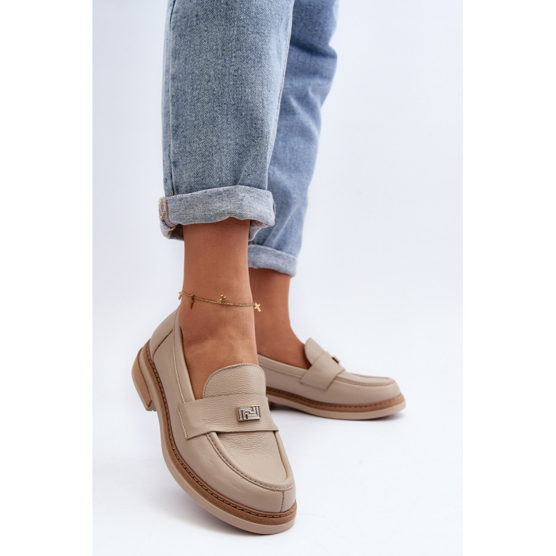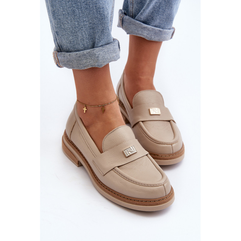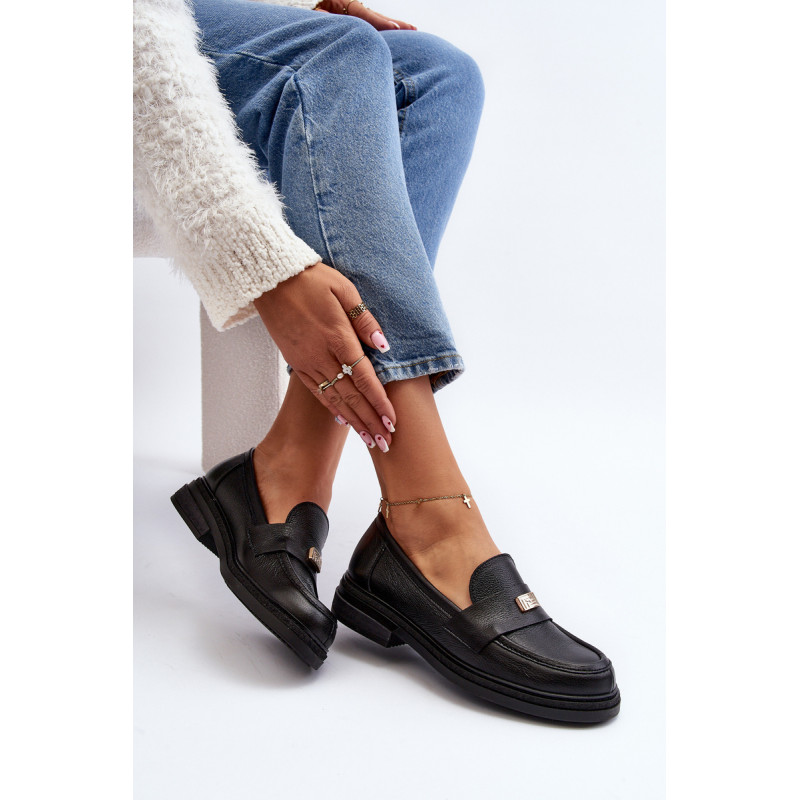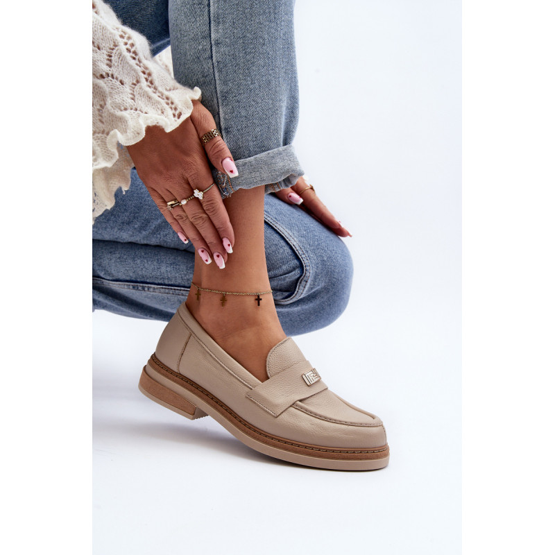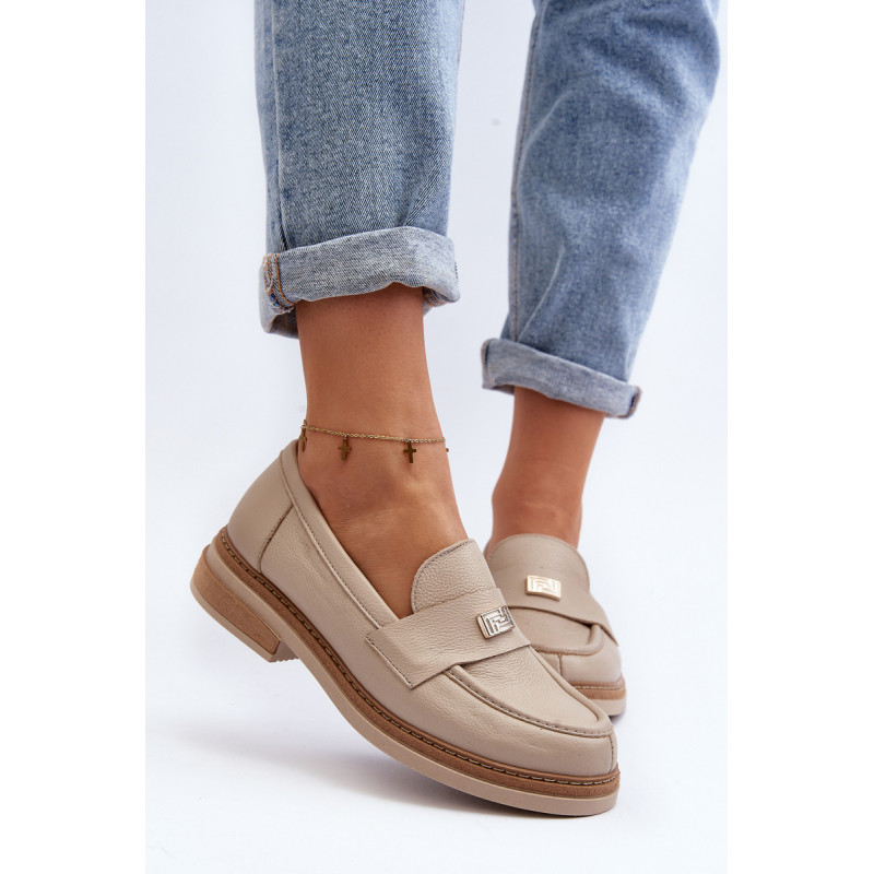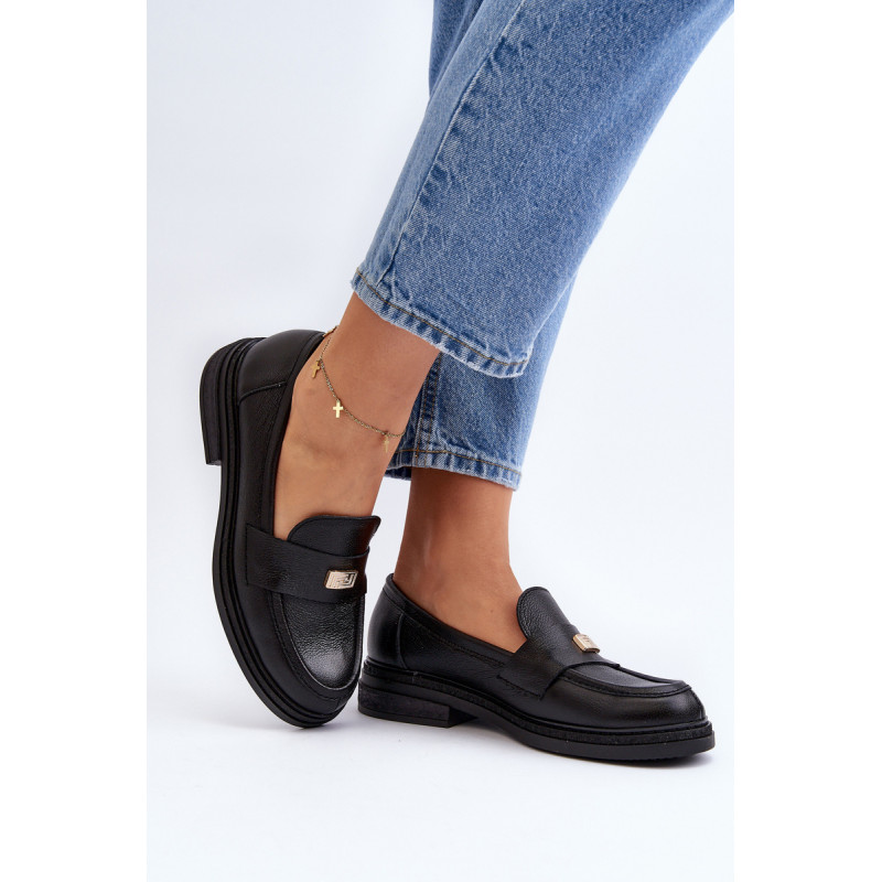 Moteriški mokasinai iš natūralios odos. Tvirtinama ant plokščio kulno. Suapvalinti kojų pirštai. Nedidelė puošmena priekyje. Odinis vidpadis suteiks komforto naudojimo metu. Kulnas sutvirtintas. Šį elegantišką stilių tikrai priderinsite prie daugelio pavasariškų drabužių! Rinkdamiesi dydį, žiūrėkite dydžių lentelę.