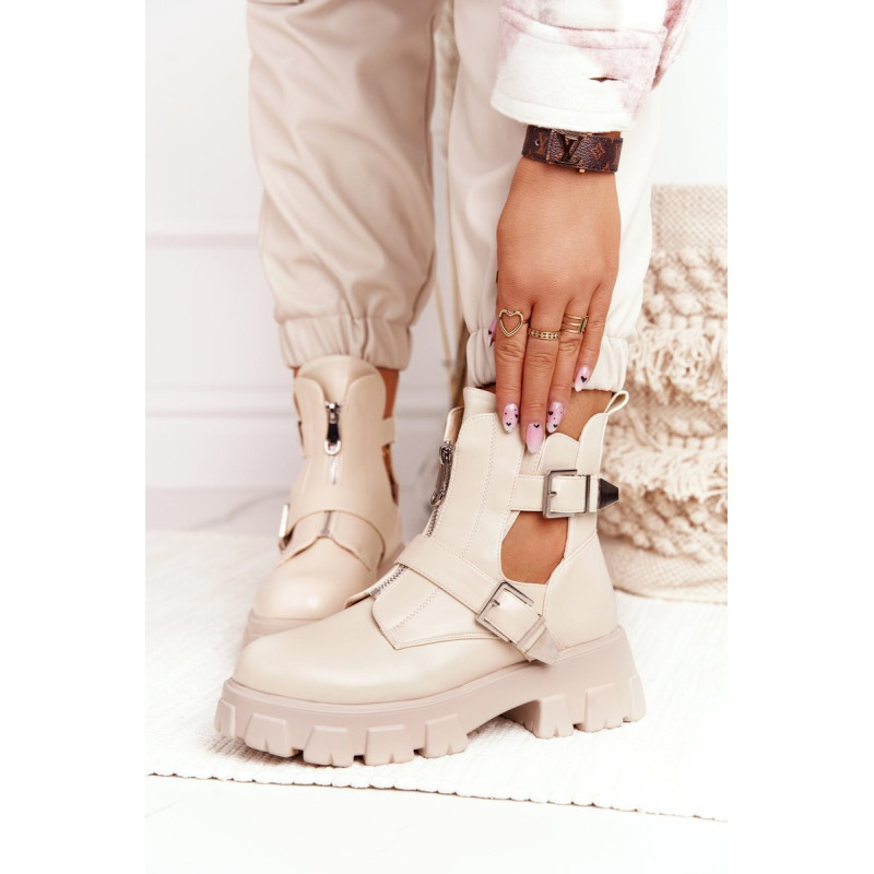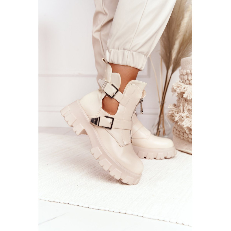 Unikalūs batai su išpjovomis ir sagtimis ant didžiulės platformos. Darbininkai pagaminti iš ekologiškos odos. Batai puikiai tiks prie glam rock ar grunge stilizacijų. Renkantis dydį, naudokite dydžių lentelę.