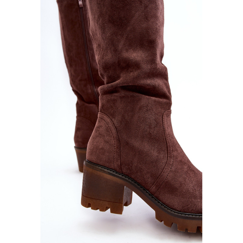 Moteriški batai su kotu iki kelių. Pagaminta iš ekologiškos zomšos. Užsegamas užtrauktuku. Pastatykite ant žemo, stambaus kulno. Sustiprinta pirštų dangtelis. Suapvalinti kojų pirštai. Galite juos naudoti įvairiais stiliais! Jie turi būti jūsų! Rinkdamiesi dydį žiūrėkite dydžių lentelę.