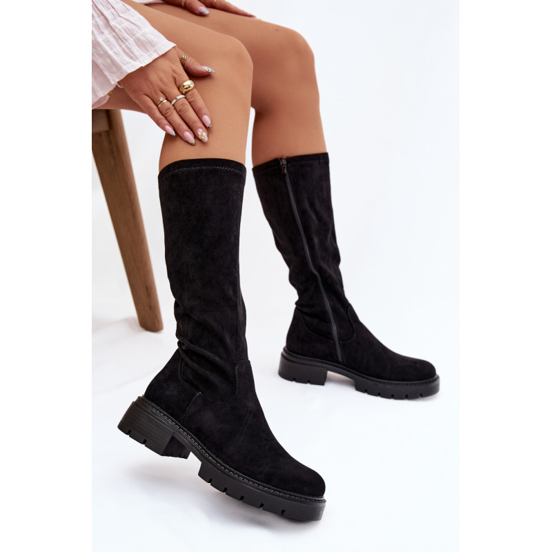 Moteriški ekosuede auliniai batai yra klasikinis pasirinkimas šaltesnėms dienoms. Modelis su prigludusia ašimi gražiai išryškina koją, sukuriant moterišką ir liekną siluetą. Vidus, išklotas avalynės antklode, esančia pėdos aukštyje, užtikrina komfortą ir šilumą dėvint. Patogus užtrauktukas palengvina apsiaustą ir nuėmimą. Tai laiko patikrintas modelis, kuris puikiai dera tiek su suknelėmis, tiek su sijonais, sukurdami stilingus įvaizdžius. Pasirinkdami dydį, prašome vadovautis dydžių lentele. Renkantis dydį, vadovaukitės dydžių lentele.