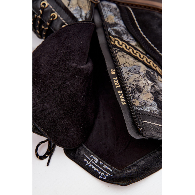 Moteriški Maciejka kulniukai yra išskirtinė pasiūlymas moterims, kurios mėgsta derinti komfortą su išskirtiniu stiliumi. Pagaminti iš natūralios odos, jie žavi elegantišku išvaizda ir patvarumu. Jų originalus viršus ir apgalvoti detalės suteikia jiems unikalų charakterį, leidžiantį išsiskirti bet kokiame įvaizdyje. Modelis turi tiek raištelius, tiek ir patogų užtrauktuką, kuris palengvina užsimaukšlinimą ir užtikrina tobulą prigludimą prie pėdos. Apvalios nosys prideda klasikinės elegancijos, o vidus, išklotas minkštu medžiagu, užtikrina šilumą ir patogumą šaltomis dienomis. Šie batai puikiai tinka kasdieniams stiliams, pabrėždami jūsų individualų stilių. Prašome atsižvelgti į dydžių lentelę renkantis dydį. Renkantis dydį, vadovaukitės dydžių lentele.