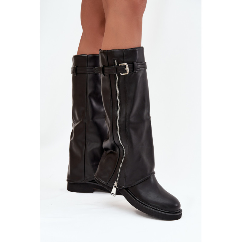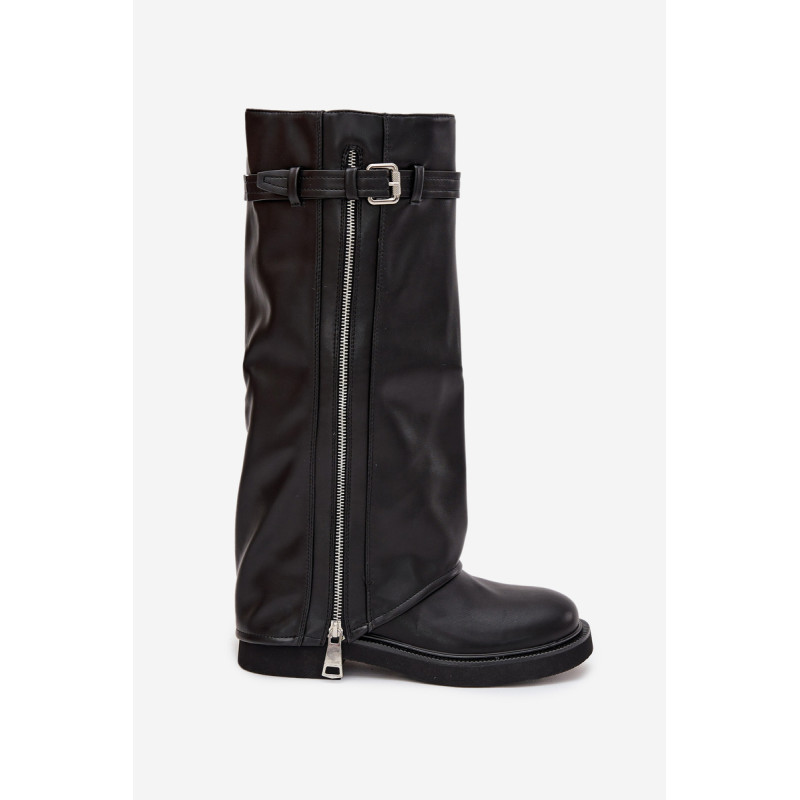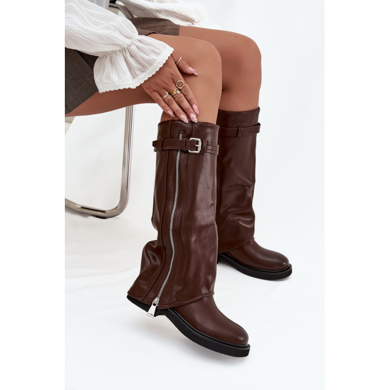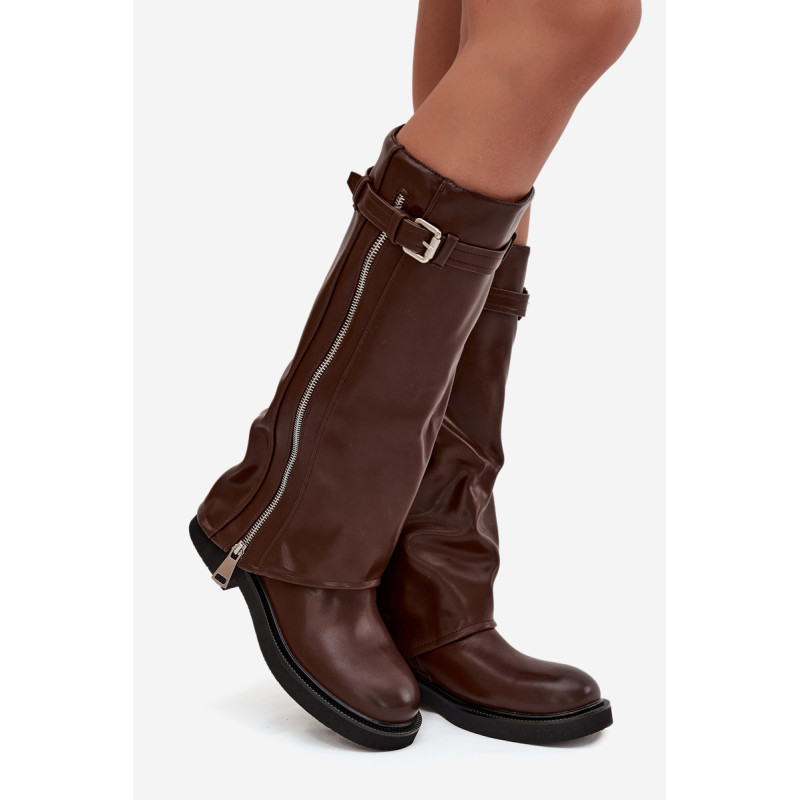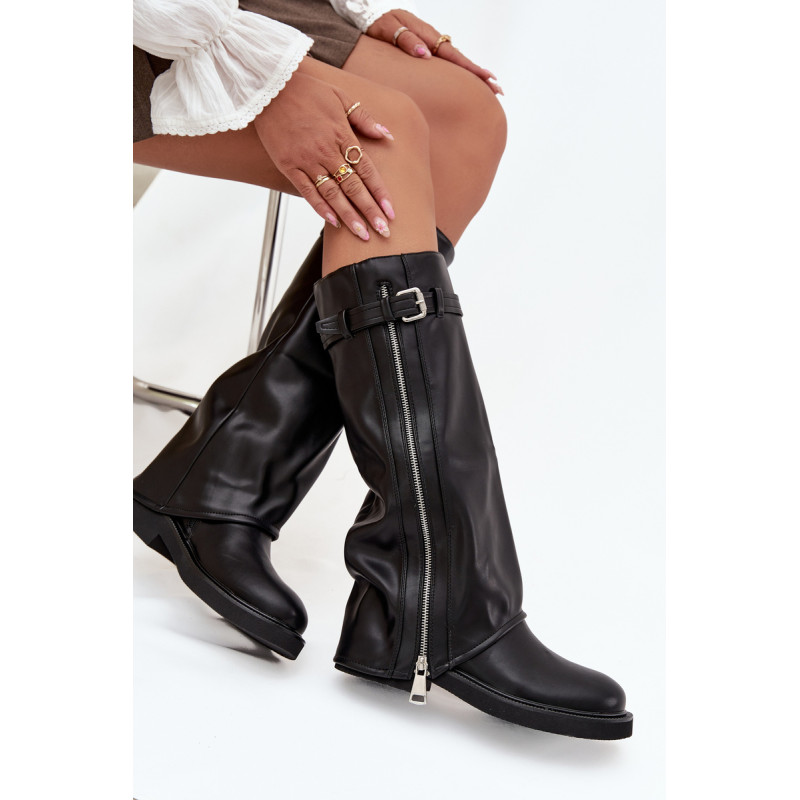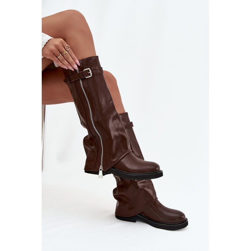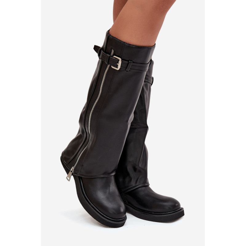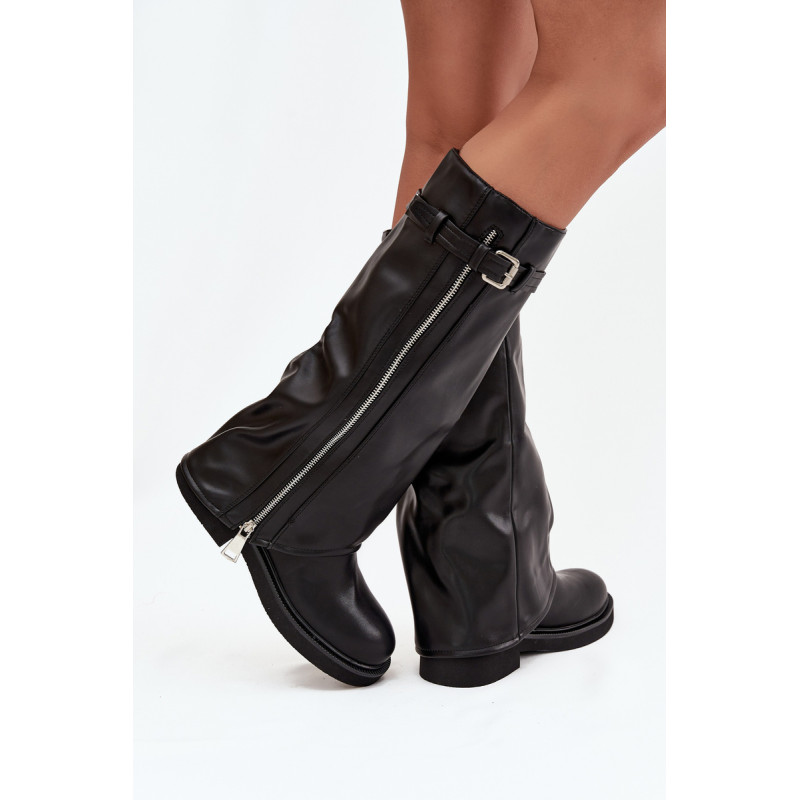 Moteriškos auliniai batai su pakreiptu viršumi yra tikras rudens-žiemos sezono hitas. Pagaminti iš ekologiškos odos. Pastatyti ant plokščio kulno, jie tinka kasdieniam nešiojimui, o dėka batų antklodės pamušalo suteikia komforto ir šilumos šaltomis dienomis. Praktinis, lengvai užsidaromas modelis palengvina užsidėjimą, o madingi detalės suteikia unikalų charakterį – juostos su sagtimi viršutinėje dalyje ir sidabrinis užtrauktukas, kurį galima atsegti pagal asmeninius pageidavimus, daro šį modelį originaliu ir stilingu aksesuaru. Šie auliniai batai puikiai papildys tiek kasdienius derinius su kelnių ar leggingų, tiek moteriškesnius įvaizdžius su suknelėmis. Renkantis dydį, vadovaukitės dydžių lentele.