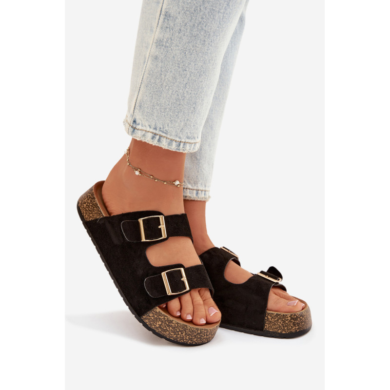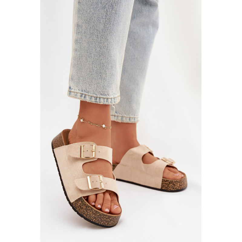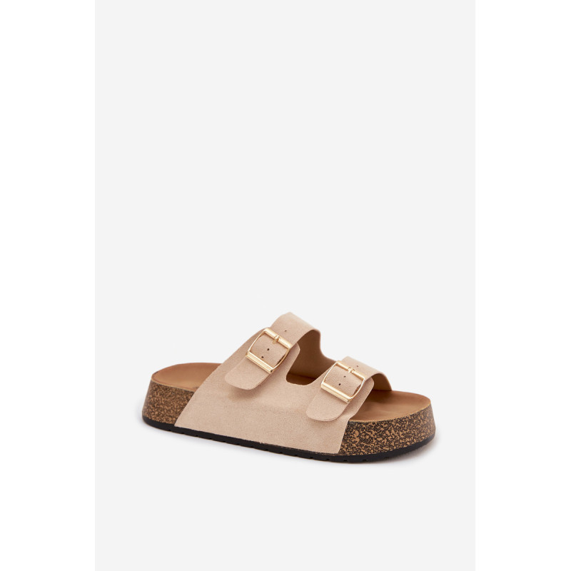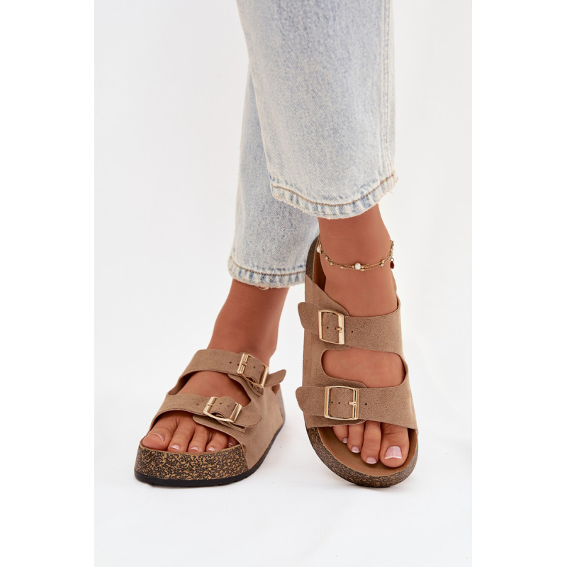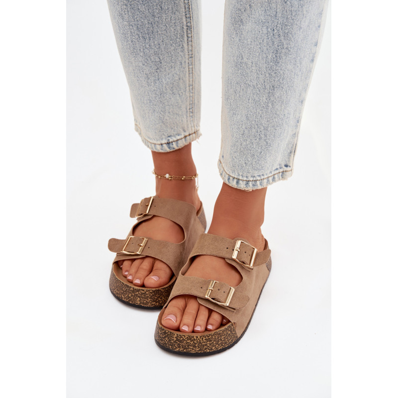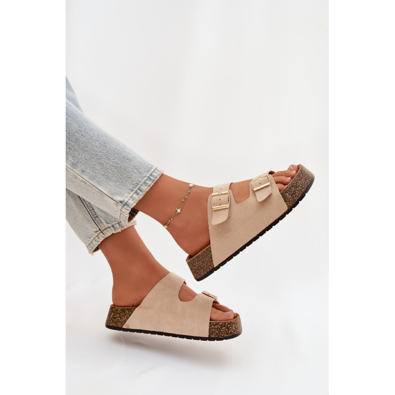 Moteriški sandalai su kamštinės platformos yra madingas ir patogus pasirinkimas šiltiems dienoms. Pagaminti iš ekologiškos zomšos, atrodo stilingai ir maloniai priglunda prie pėdos. Du dirželiai su auksinėmis sagtimis suteikia elegancijos ir pabrėžia šiuolaikines mados tendencijas. Modelis puikiai tiks vasaros stiliams, jungiant komfortą su madingu įvaizdžiu. Renkantis dydį, vadovaukitės dydžių lentele.