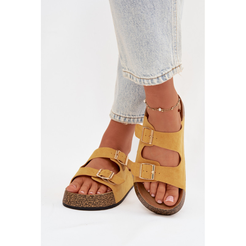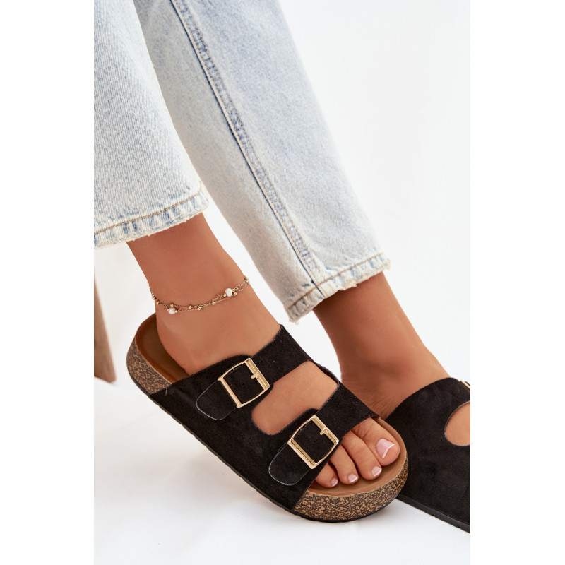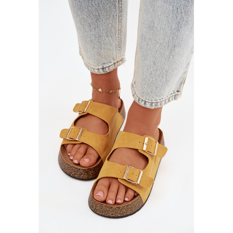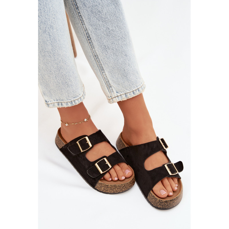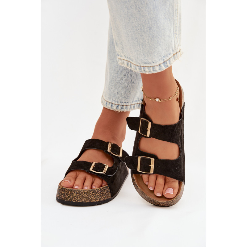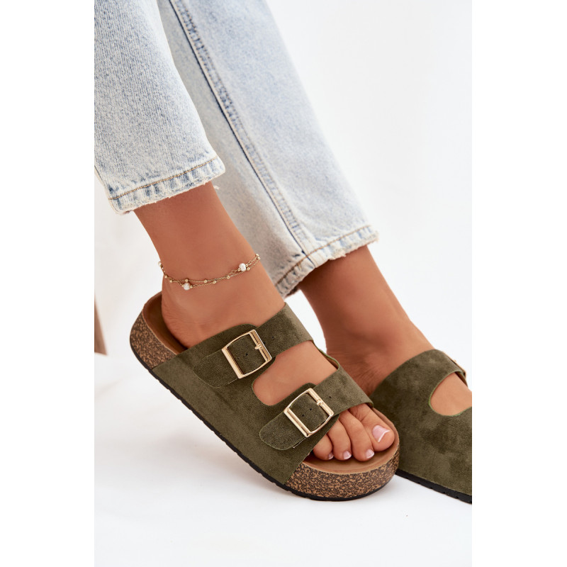 Moteriški sandalai su kamštinės platformos yra madingas ir patogus pasirinkimas šiltiems dienoms. Pagaminti iš ekologiškos zomšos, atrodo stilingai ir maloniai priglunda prie pėdos. Du dirželiai su auksinėmis sagtimis suteikia elegancijos ir pabrėžia šiuolaikines mados tendencijas. Modelis puikiai tiks vasaros stiliams, jungiant komfortą su madingu įvaizdžiu. Renkantis dydį, vadovaukitės dydžių lentele.
