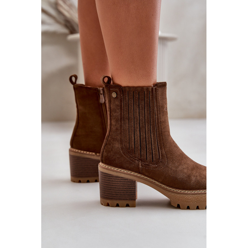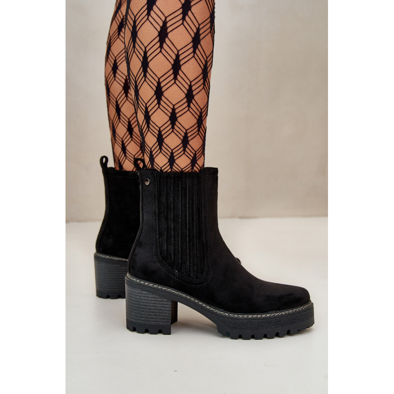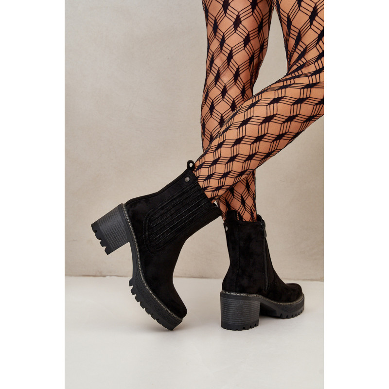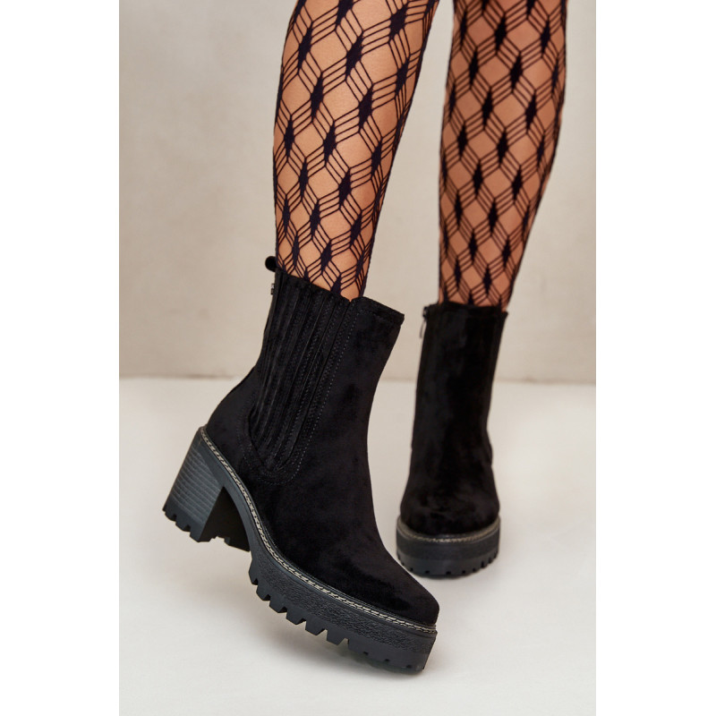 Moteriški batai iš ekologiškos zomšos. Pastatyti ant stabilaus blokinio kulno. Vidus apšiltintas batų vilna, suteikia šilumą ir komfortą dėvint. Šis modelis užsegamas užtrauktuku, todėl jį lengva užsidėti ir nusiimti. Pirštai suapvalinti. Puikiai tinka rudens ir žiemos stiliams. Rinkdamiesi dydį, žiūrėkite dydžių lentelę.
