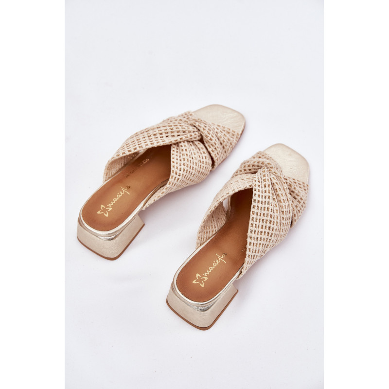 Moteriški šlepetės iš prekės ženklo Maciejka, pagamintos iš tekstilės medžiagos, yra elegantiškas pasirinkimas šiltoms dienoms. Įrengtos ant bloko kulno, jos užtikrina stabilumą ir komfortą visą dieną. Jų stilingas dizainas puikiai derina eleganciją su komfortu, todėl jos idealiai tinka tiek kasdieniams, tiek formalesniems drabužiams. Renkantis dydį, vadovaukitės dydžių lentele.