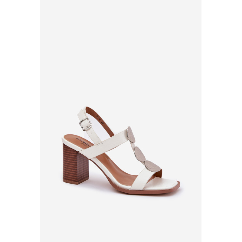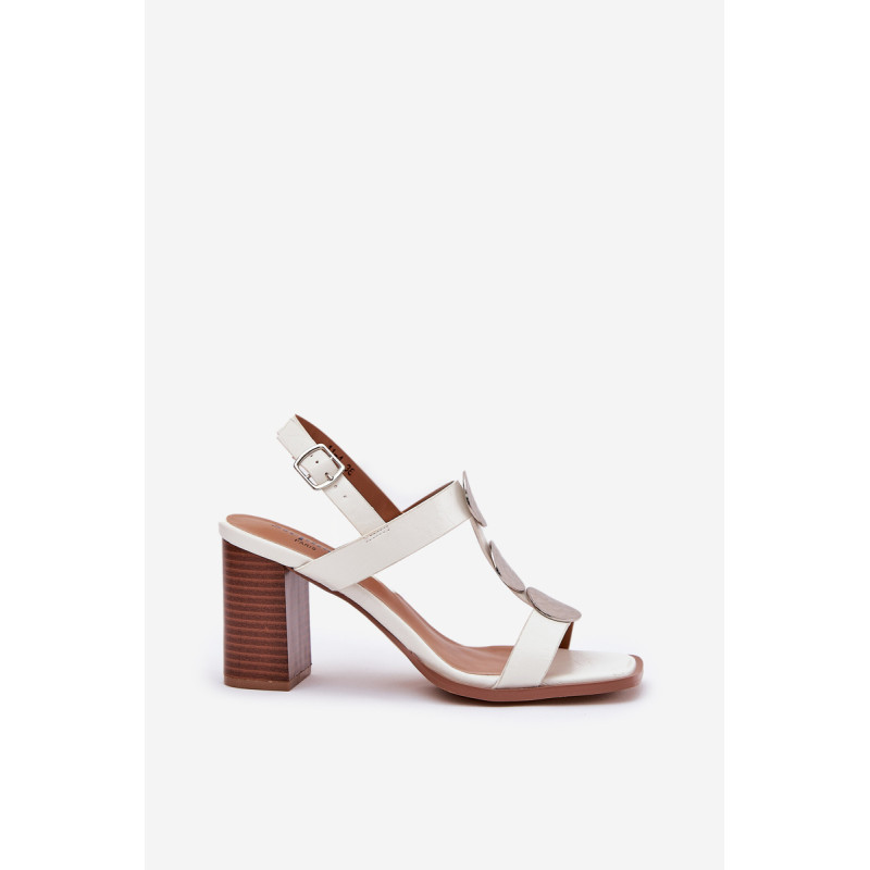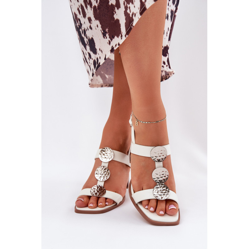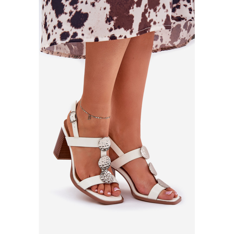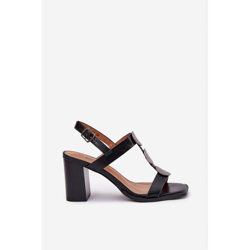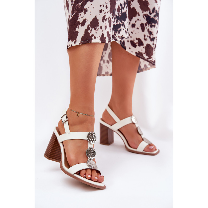 Stilingi moteriški sandalai, pagaminti iš ekokožos, sumontuoti ant blokinio kulno. Reguliuojama dirželio su sagtimi užtikrina puikų prigludimą. Priekyje subtilūs papuošimai suteikia jiems išskirtinį žavesį. Puikus pasirinkimas vasaros dienoms, tiek kasdieniams, tiek elegantiškesniems stiliams. Renkantis dydį, vadovaukitės dydžių lentele.