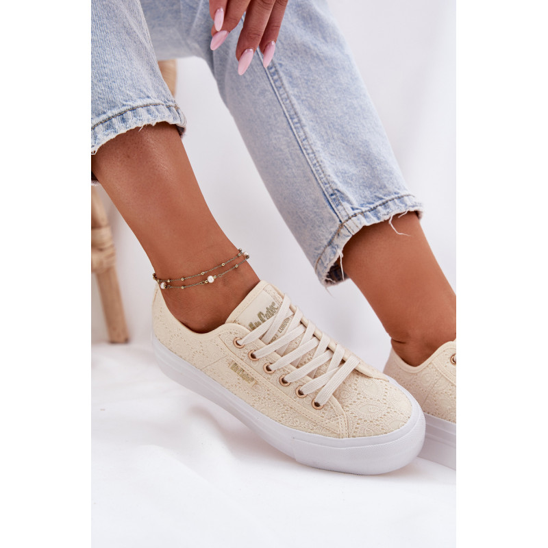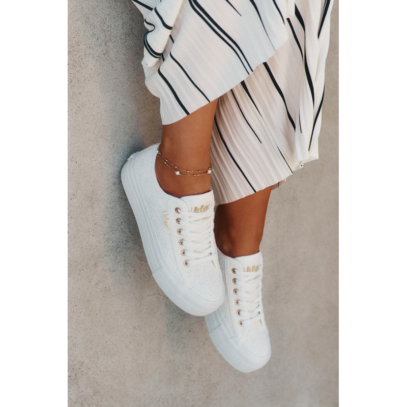 Moteriški sportbačiai iš Lee Cooper prekės ženklo, pagaminti iš tekstilės medžiagos, yra komforto ir unikalaus stiliaus derinys. Modelis išsiskiria nėriniuotu viršumi, kuris suteikia jiems švelnų, mergaitišką charakterį. Apvalūs pirštai užtikrina patogumą visą dieną, o minkšta pado įdėklas garantuoja komfortą ir tinkamą amortizaciją. Idealiai tinka kasdieniams stiliams, šie sportbačiai bus puikus pasirinkimas kasdienai, derinant funkcionalumą su elegantišku įvaizdžiu. Renkantis dydį, vadovaukitės dydžių lentele.