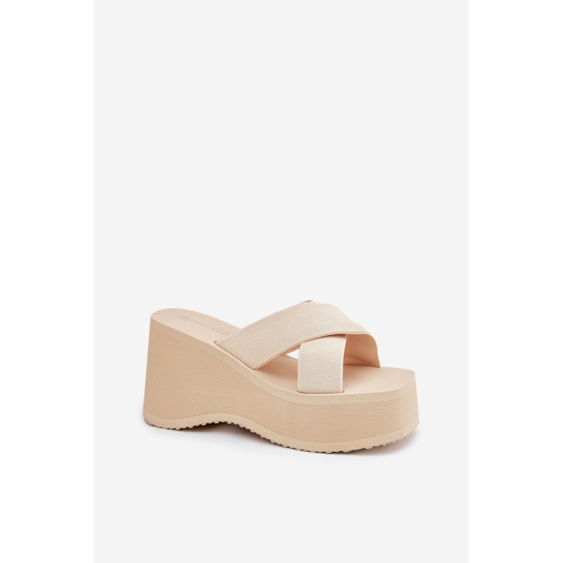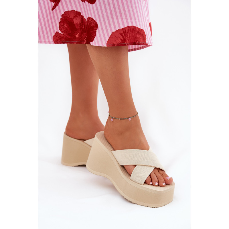 Lengvi moteriški šlepetės ant platformos ir pakulnės, derinantys komfortą su madinga išvaizda. Batų viršus pagamintas iš tekstilės medžiagos, užtikrinančios oro pralaidumą ir komfortą. Puikiai tinka vasaros kelionėms, puikiai dera prie vasarinių suknelių, sijonų ar šortų, suteikdami kiekvienam įvaizdžiui lengvumo ir stilingo charakterio. Renkantis dydį, vadovaukitės dydžių lentele.