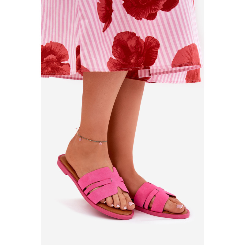 Klasikiniai moteriški šlepetės, pagamintos iš eko zomšos, ant plokščio kulno, derinančios eleganciją su patogumu. Iškirpos ir subtilus dirželis suteikia joms lengvumo ir modernų charakterį. Puikiai tinka kasdieniam dėvėjimui, šios šlepetės bus puikus pasirinkimas šiltomis dienomis, puikiai derančios su suknelėmis, sijonais ar kelnėmis, derinant paprastumą su funkcionalumu. Renkantis dydį, vadovaukitės dydžių lentele.