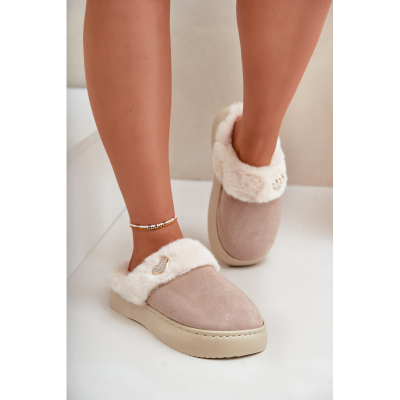 Moteriški šlepetės, idealiai tinkančios vėsesniems orams. Pagamintos iš minkšto kailio, papuoštos mielomis širdelėmis, suteikia jaukumą ir komfortą. Įrengtos ant storos pado, kuris puikiai izoliuoja nuo šalto paviršiaus. Puikiai tinka dėvėti namuose, prideda šiek tiek stiliaus kasdieniam poilsiui. Renkantis dydį, vadovaukitės dydžių lentele.
