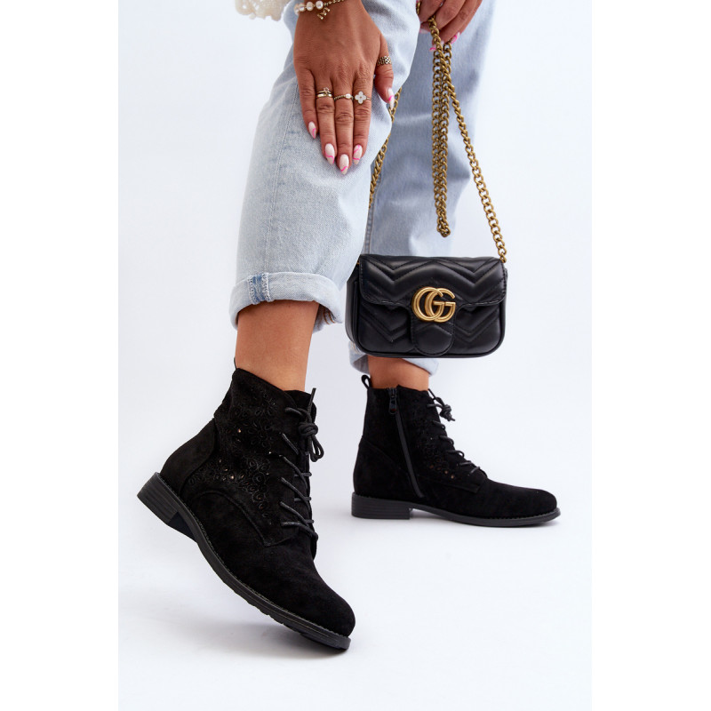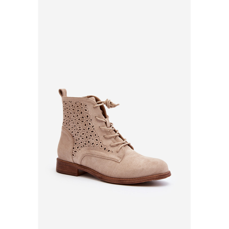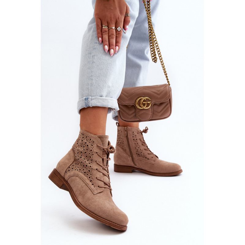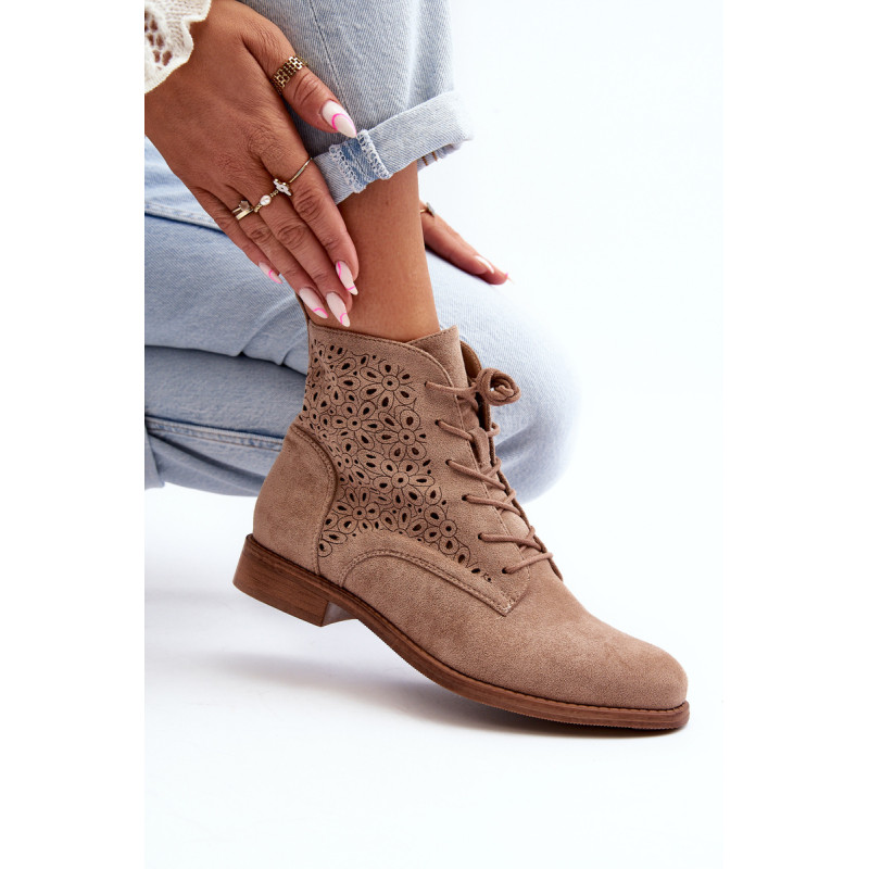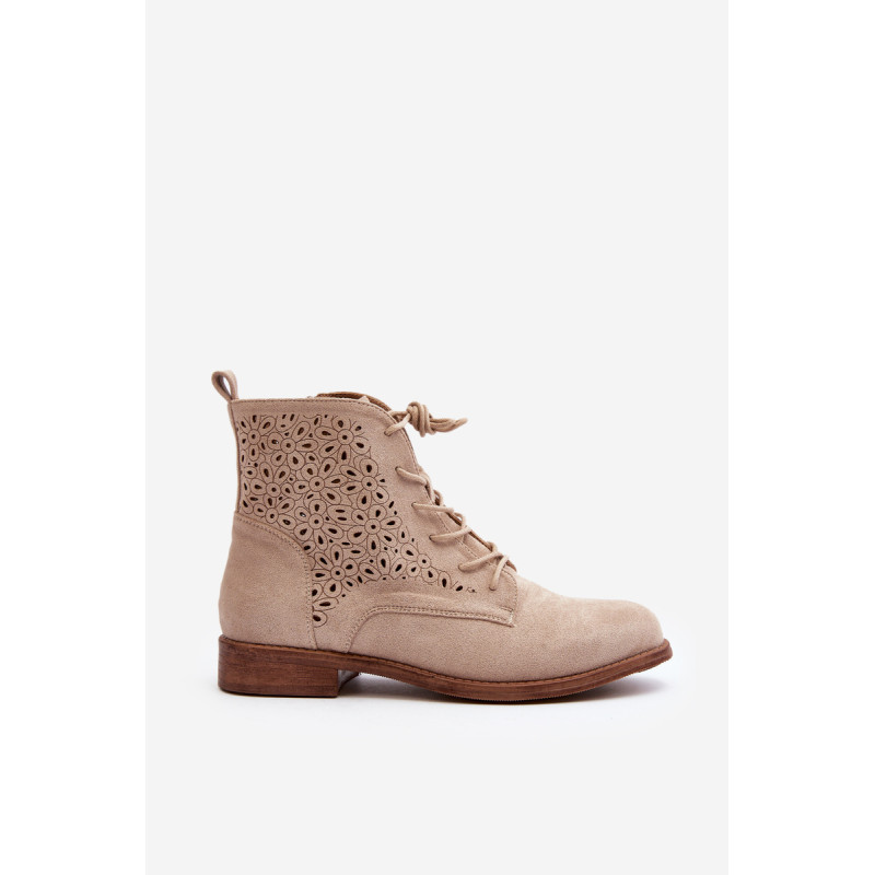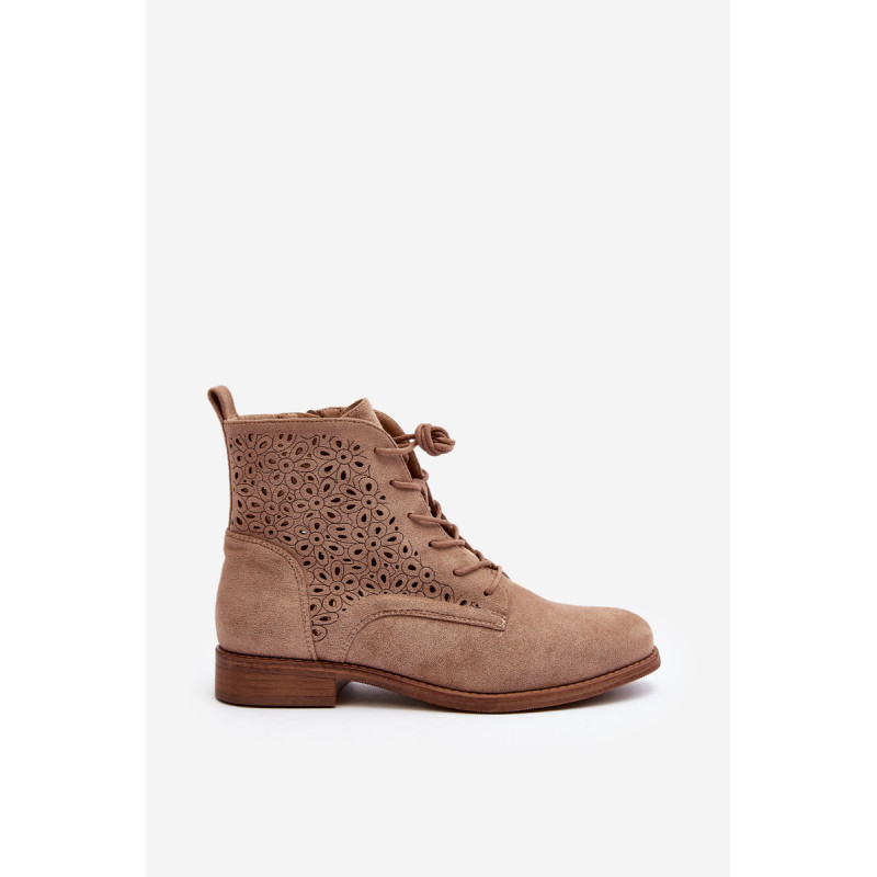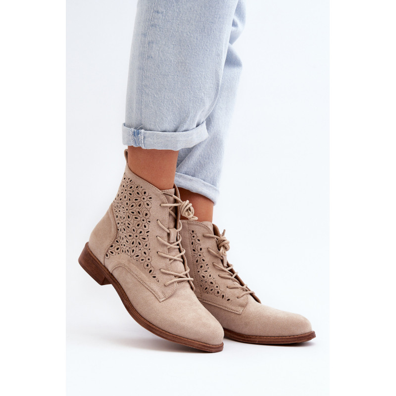 Moteriški batai iš ekologiškos zomšos. Viršus perforuotas, papuoštas gėlėmis. Nustatykite ant plokščio kulno. Užsegamas užtrauktuku šone ir papildomai su raišteliu, kas leis geriau priglusti. Suapvalinti kojų pirštai. Be to, šis modelis turi sustiprintą kulno skaitiklį. Būtinai peržiūrėkite kitus mūsų pasiūlyme esančius batų modelius! Rinkdamiesi dydį, žiūrėkite dydžių lentelę.
