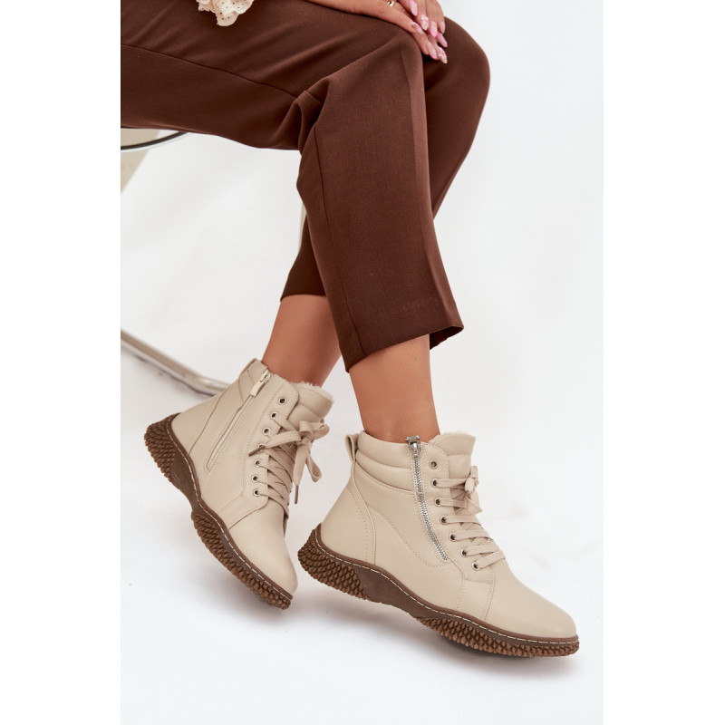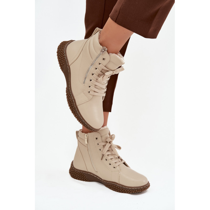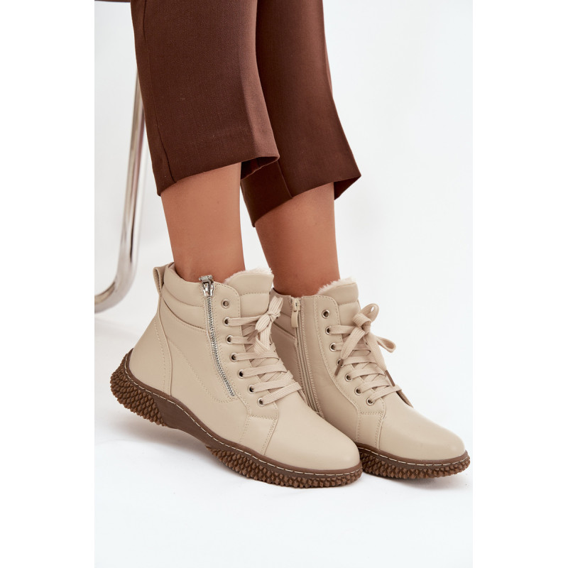 Moteriški ekoskornos aulinukai yra stilingi ir patogūs šaltomis dienomis. Viduje yra švelnių kailinių pamušalas, užtikrinantis šilumą ir patogumą dėvint. Modelis sujungia raištelius su dvigubu užtrauktuku, iš kurių vienas tarnauja kaip dekoratyvinis elementas, suteikdamas madingą išvaizdą. Puikiai tinka kasdienėms išvykoms. Prašome vadovautis dydžių lentele renkantis dydį. Renkantis dydį, vadovaukitės dydžių lentele.