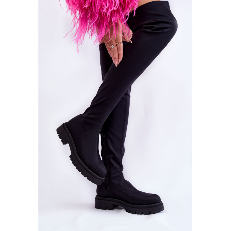 Klasikiniai batai – muškietininkai pagaminti iš tekstilės. Šis modelis yra užsegamas, su papildomu užtrauktuku viršutinės dalies apačioje. Be to, batai turi standintą kulną. Modelis montuojamas ant plokščio kulno ir platformos su grioveliais. Batai turi kailio izoliaciją tik pėdos aukštyje. Renkantis dydį, naudokite dydžių lentelę.