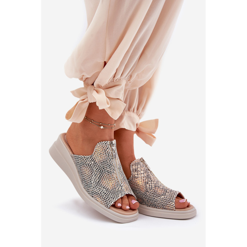 Moteriški šlepetės iš eko odos, įrengtos ant platformos, yra elegantiška pasirinkimo galimybė šiltoms dienoms. Modelis išsiskiria dekoratyviniu užtrauktuku, kuris suteikia modernumo. Idealiai tinka vasaros stiliams, šios šlepetės bus puikus pasirinkimas suknelėms, sijonams ar kelniams, suteikiančios kiekvienam įvaizdžiui lengvumo ir elegancijos. Renkantis dydį, vadovaukitės dydžių lentele.
