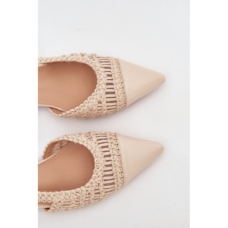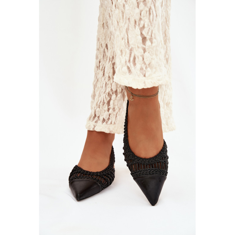 Stilingi moteriški sandalai išskirtiniu pintu medžiaga. Žemas blokinis kulnas užtikrina stabilumą ir patogumą dėvint, puikiai tinka kasdieniam naudojimui. Uždaryti, smaili nosys suteikia modeliui moteriškumo charakterį. Šie sandalai puikiai papildo tiek vasaros stilių, tiek elegantiškesnius ansamblius. Ideali pasirinkimas moterims, vertinančioms patogumą, madingą išvaizdą ir subtilius detales. Renkantis dydį, vadovaukitės dydžių lentele.