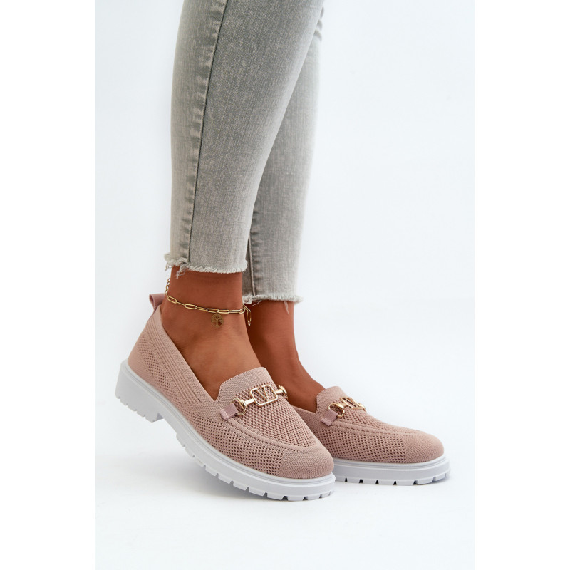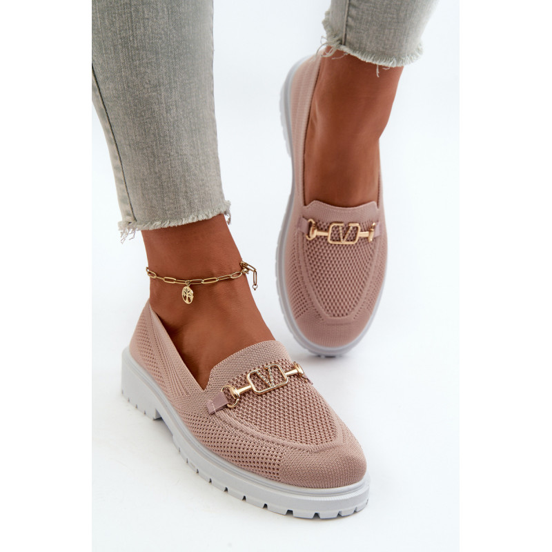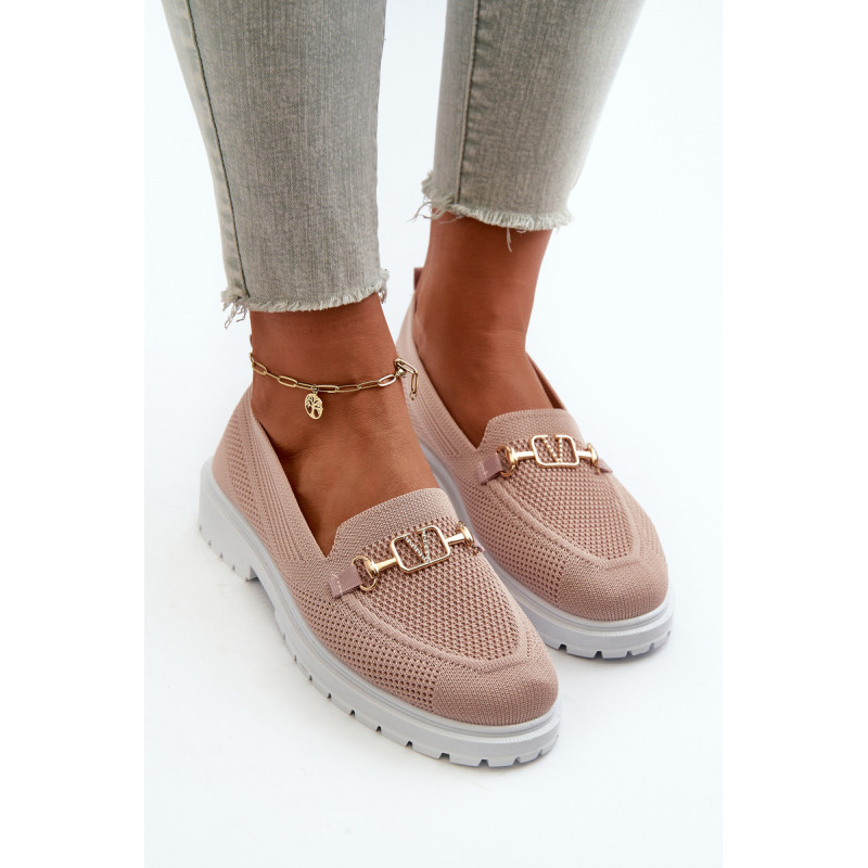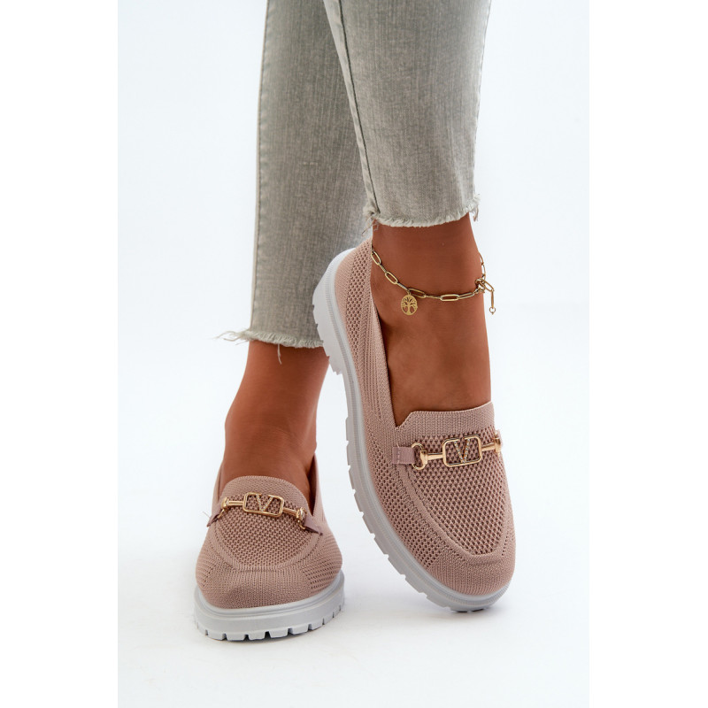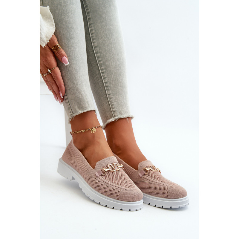 Moteriški mokasinai iš kvėpuojančio audinio. Padėkite ant plokščio kulno, užtikrindami komfortą visą dieną. Suapvalinti pirštai suteikia jiems klasikinę išvaizdą. Puoštas aukso spalvos detalėmis. Minkštas putplasčio vidpadis, papildomai padengtas medžiaga, garantuoja komfortą. Rinkdamiesi dydį žiūrėkite dydžių lentelę.