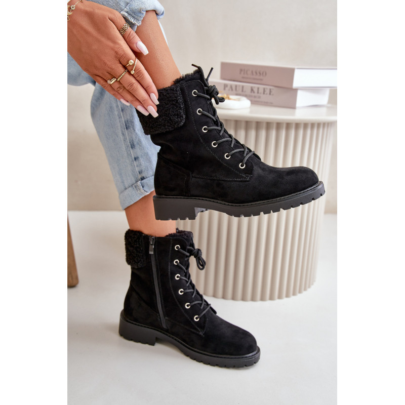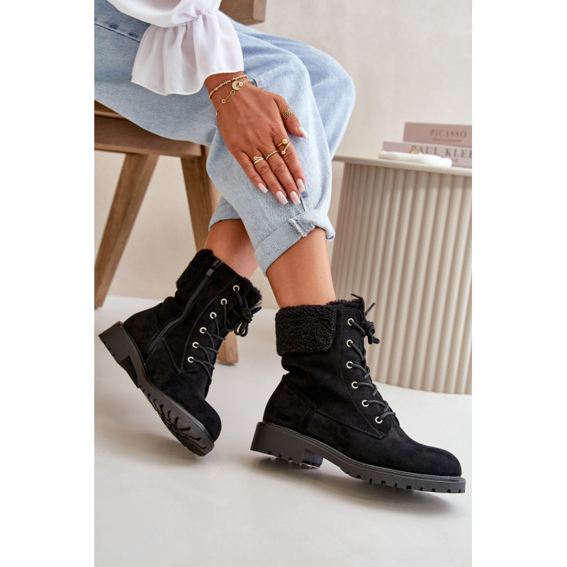 Moteriški batai buvo pagaminti iš minkštos, ekologiškos zomšos. Izoliuotas batų antklode ir kailio apdaila. Nustatykite ant plokščio kulno ir platformos. Pirštai apvalūs, kulkšnis sustingęs. Užsegamas modelis su raišteliu. Renkantis dydį, vadovaukitės dydžių lentele.
