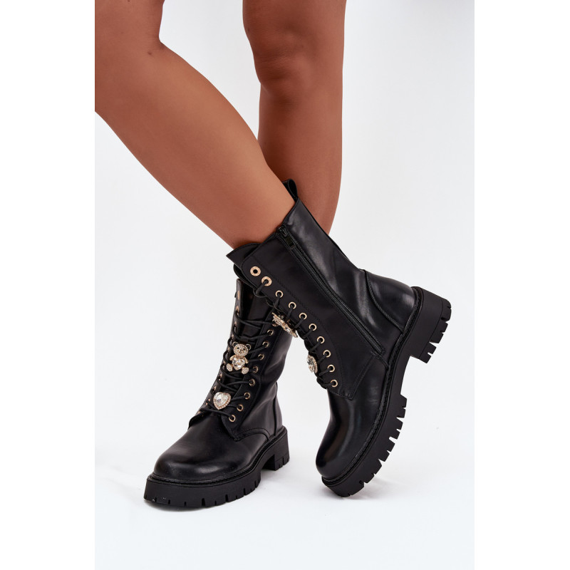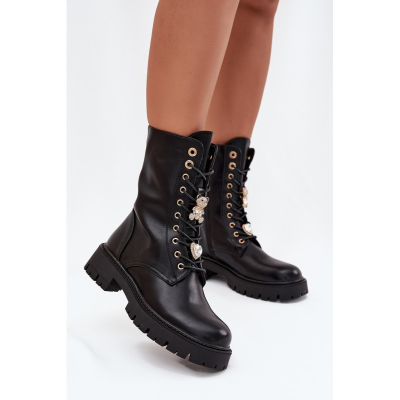 Moteriški auliniai batai iš ekologiškos odos yra stiliaus ir komforto derinys vėsesnėms dienoms. Šnūriniu modeliu su papildomu užtrauktuku, kuris palengvina užsidėjimą ir pritaikymą prie pėdos. Vidus šiltinamas batų vilna, užtikrinant šilumą net šaltomis dienomis. Ant šnurelių yra mieli žaisliukai meškos ir širdies formos, kurie suteikia batams unikalų, madingą akcentą. Puikiai tinka kasdieniams pasivaikščiojimams. Pasirinkdami dydį, prašome vadovautis dydžių lentele. Renkantis dydį, vadovaukitės dydžių lentele.
