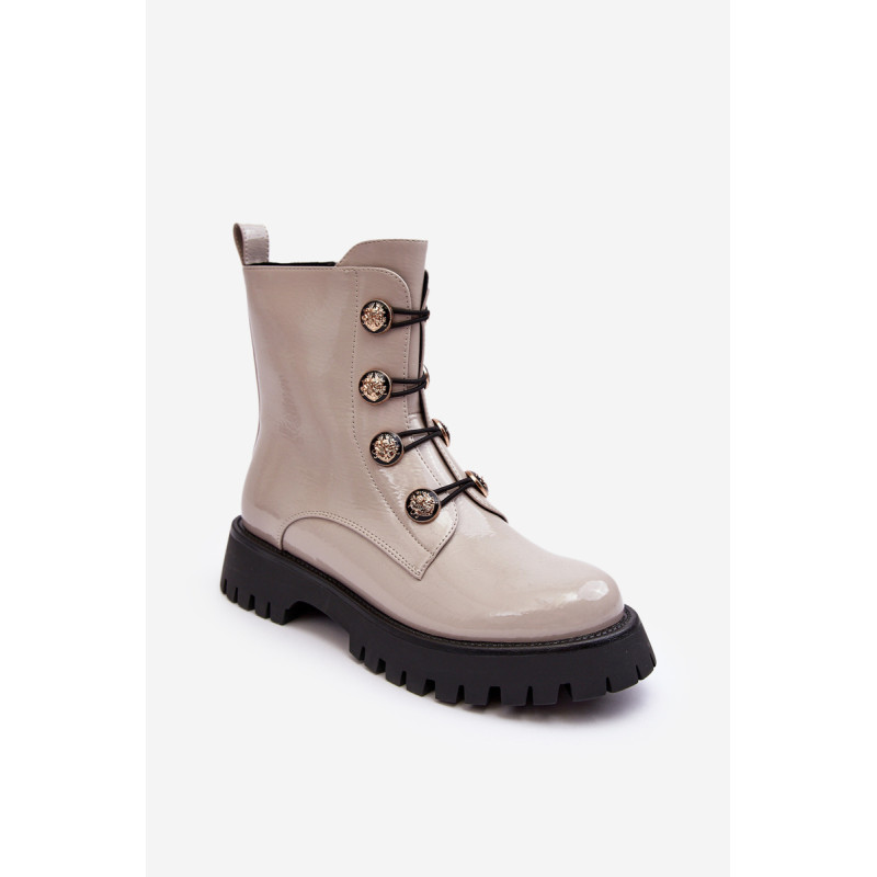 Šie madingi moteriški batai yra pagaminti iš aukštos kokybės ekologiškos odos. Jie turi izoliaciją minkštos liesti batų antklodės pavidalu. Jie pastatyti ant plokščio kulno ir platformos. Priekinė dalis dekoruota elegantiškomis sagomis. Šone užsegamas užtrauktuku. Šis modelis turėtų būti jūsų drabužių spintoje! Renkantis dydį, žiūrėkite dydžių lentelę.