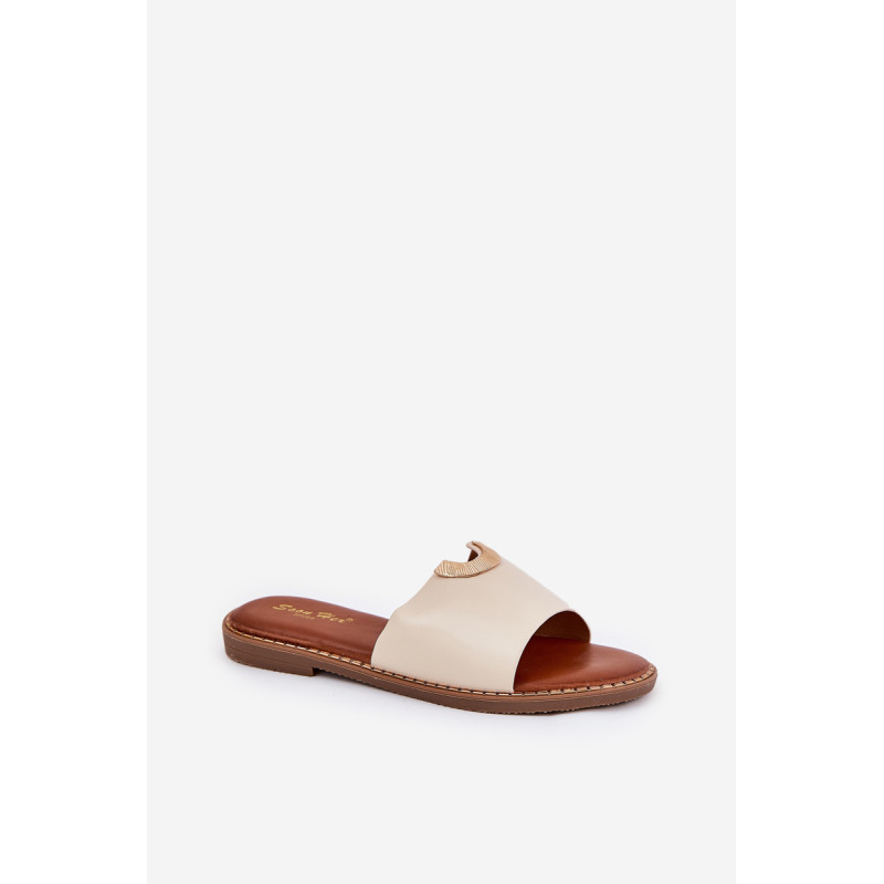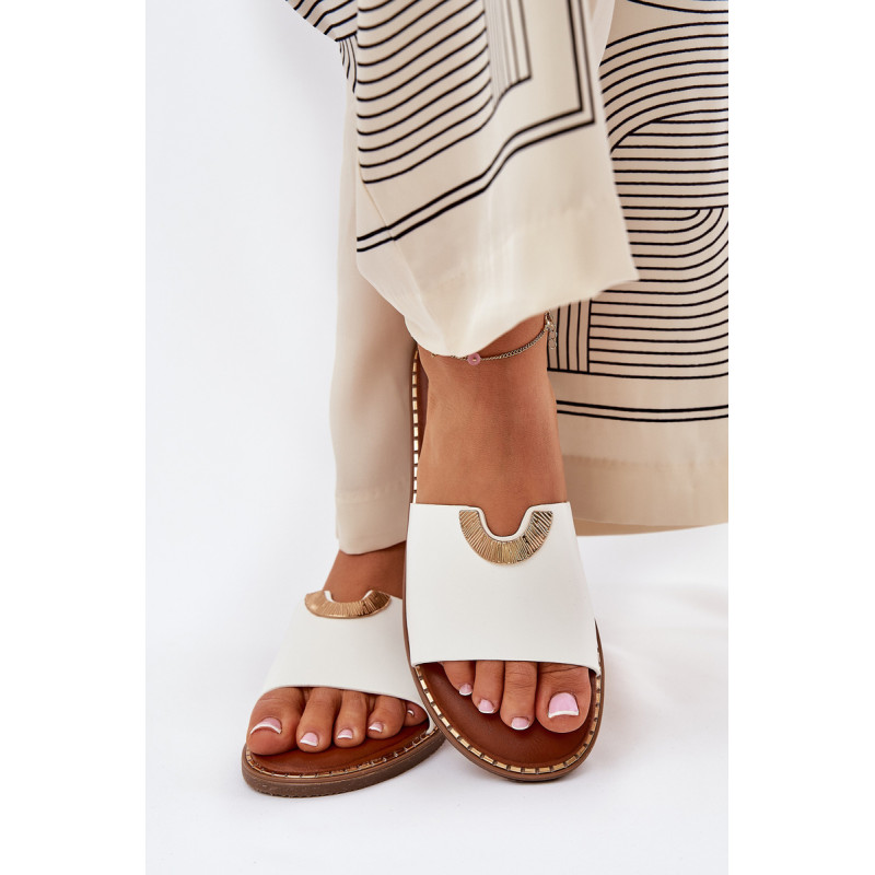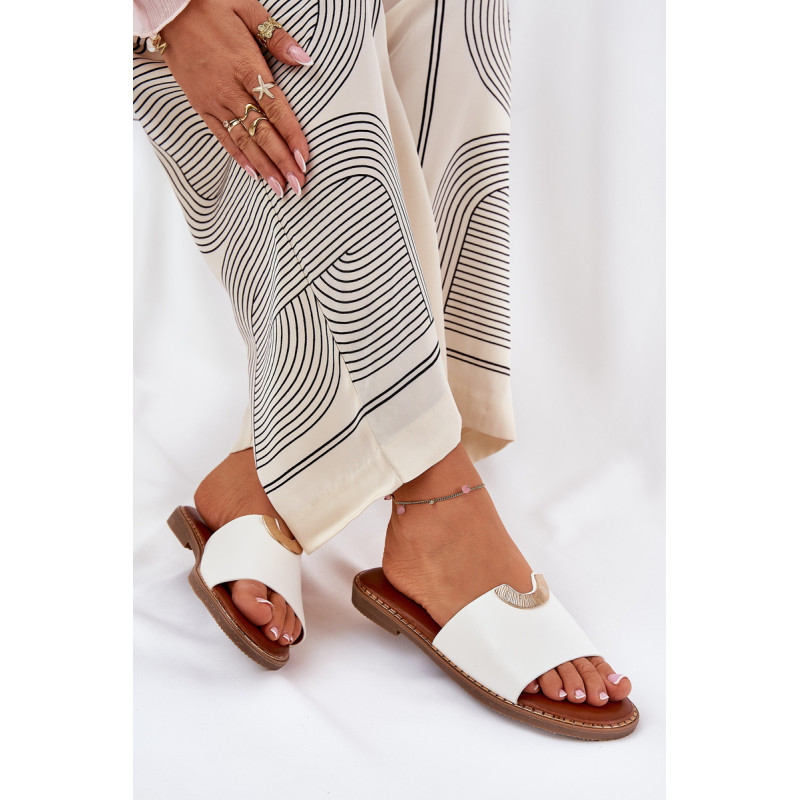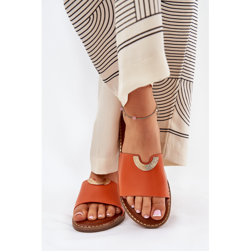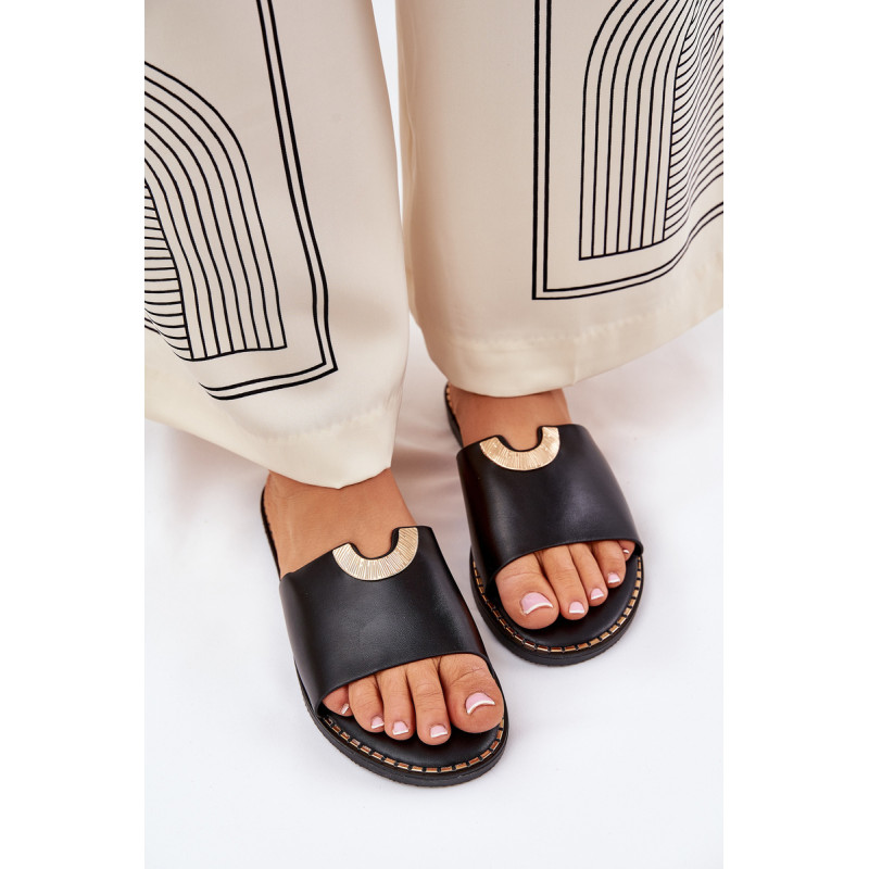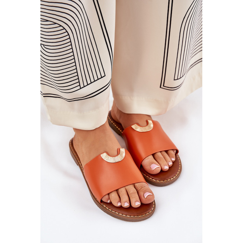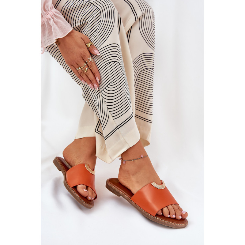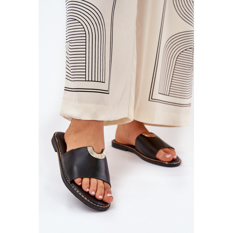 Moteriški šlepetės su plokščiu kulnu yra puikus pasirinkimas vasaros dienoms. Pagaminta iš ekologiškos odos. Klasikinis modelis papildytas dekoratyviniais elementais, kurie suteikia elegantišką charakterį. Puikiai tinka kasdieniam dėvėjimui ir vasaros pasivaikščiojimams. Puikiai dera su suknelėmis, sijonais ir kelnių, pridėdamos stilingą akcentą kiekvienam įvaizdžiui. Renkantis dydį, vadovaukitės dydžių lentele.