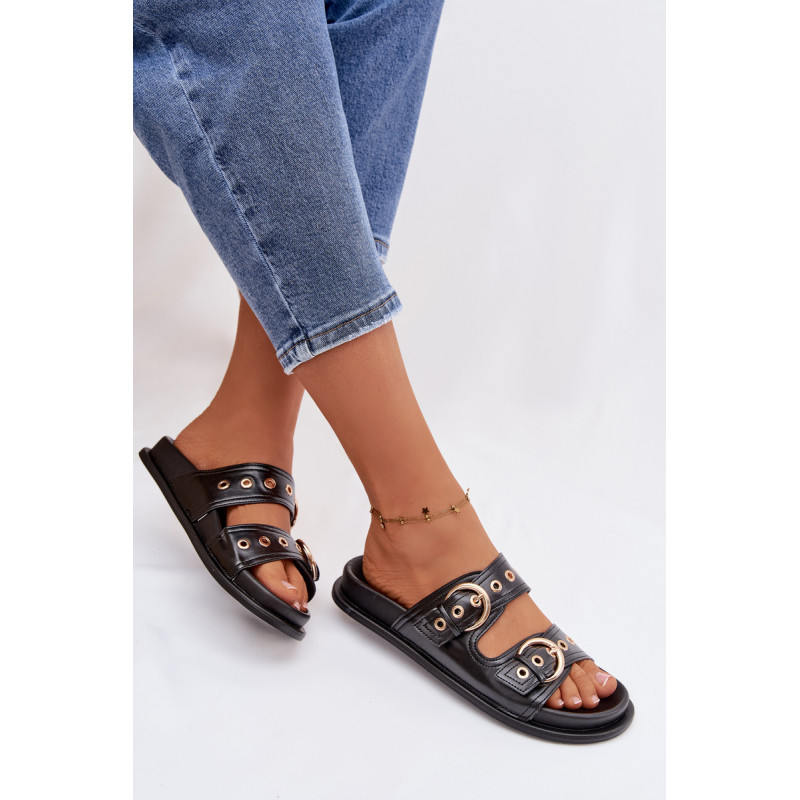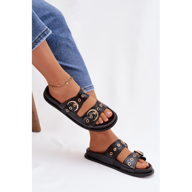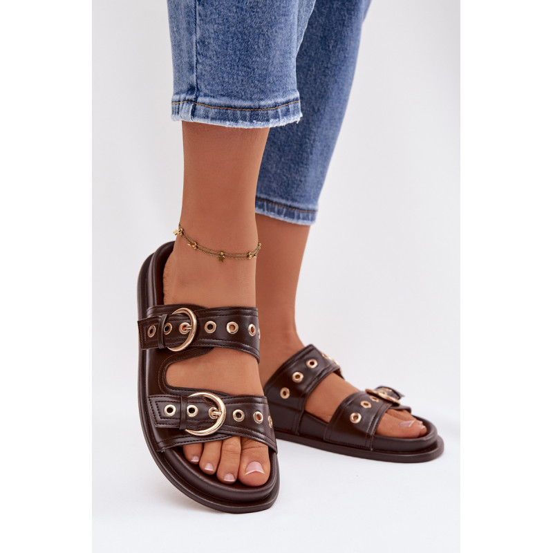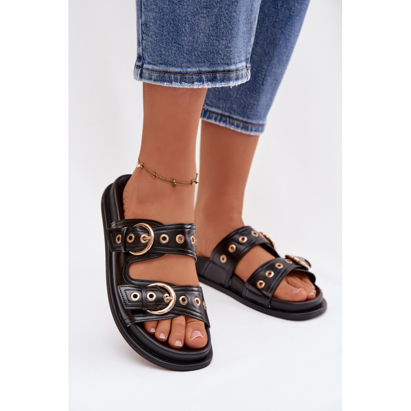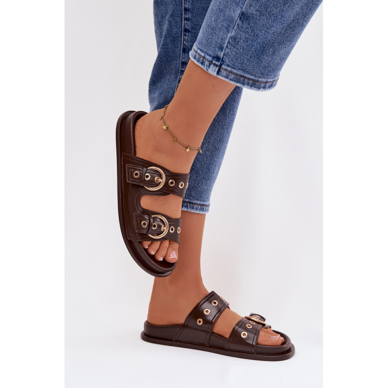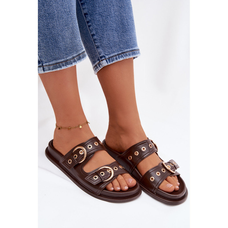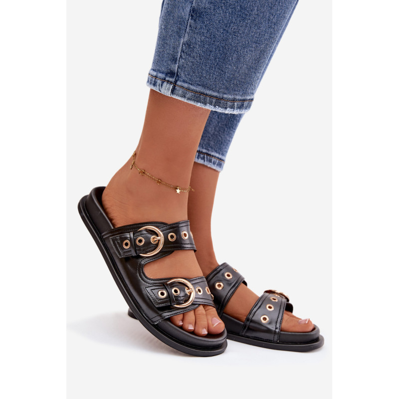 Stilingos moteriški papuošalai iš ekoskornos yra praktiškas ir madingas pasirinkimas šiltiems dienoms. Du reguliuojami dirželiai su auksinėmis sagtimis leidžia puikiai pritaikyti avalynę prie pėdos ir suteikia elegantišką išvaizdą. Universalus dizainas leidžia juos dėvėti kasdien, užtikrinant patogumą ir stilių visą dieną. Renkantis dydį, vadovaukitės dydžių lentele.