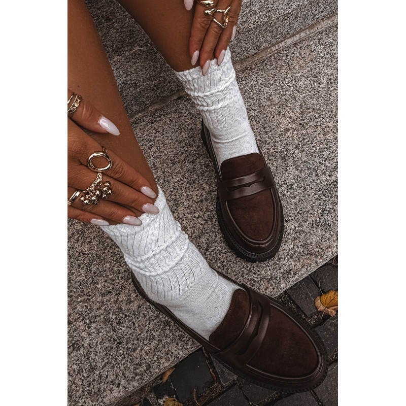 Mokasinai yra puikus pasirinkimas moterims, kurios nori suderinti eleganciją su patogumu. Pagaminti iš ekologinės odos, su suapvalintais priekiniais galiukais. Moteriški ekologinės odos mokasinai yra elegantiška ir moderni pasirinkimas. Modelis papuoštas ekologiško odos pamušalu priekyje, kuris suteikia subtilų kontrastą ir stilingą akcentą. Žemas kulnas užtikrina patogumą kasdieniam dėvėjimui, o su pjaustymu apjuosta juosta pabrėžia klasikinį, laikui nepavaldų siluetą. Šie universalūs batai puikiai tinka tiek kasdieniams, tiek iškilmingiems stiliams. Renkantis dydį, prašome vadovautis dydžių lentele. Renkantis dydį, vadovaukitės dydžių lentele.