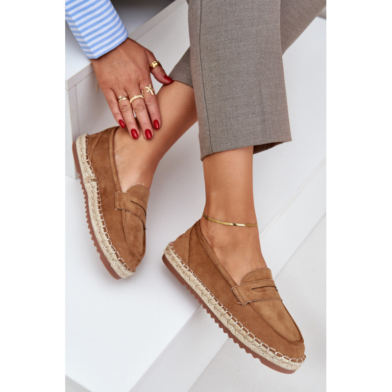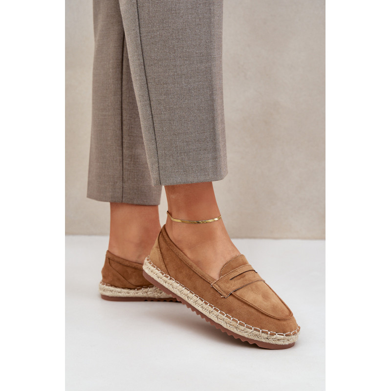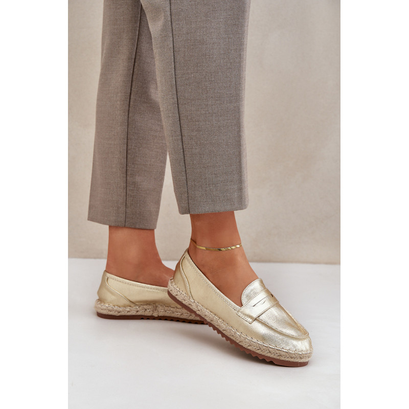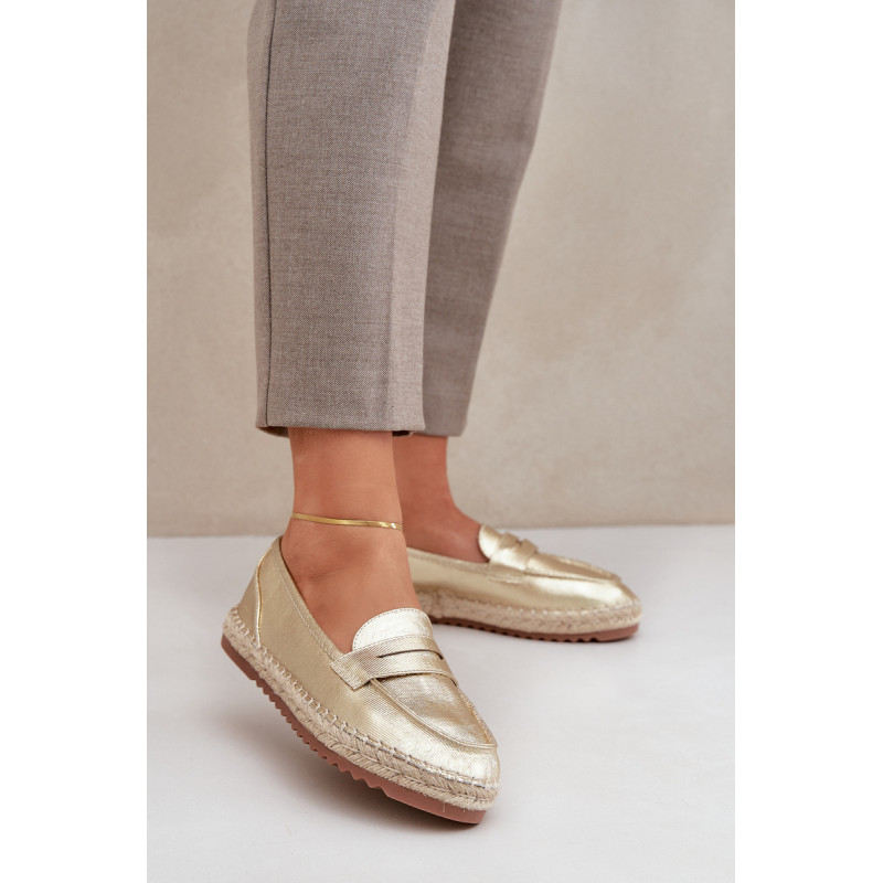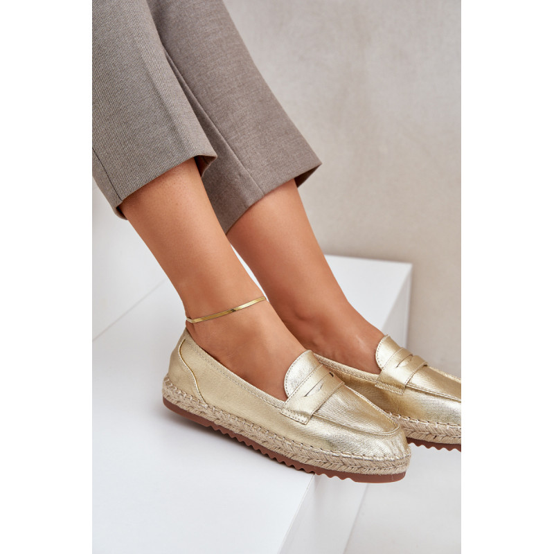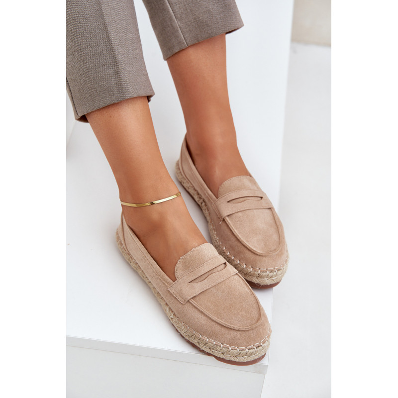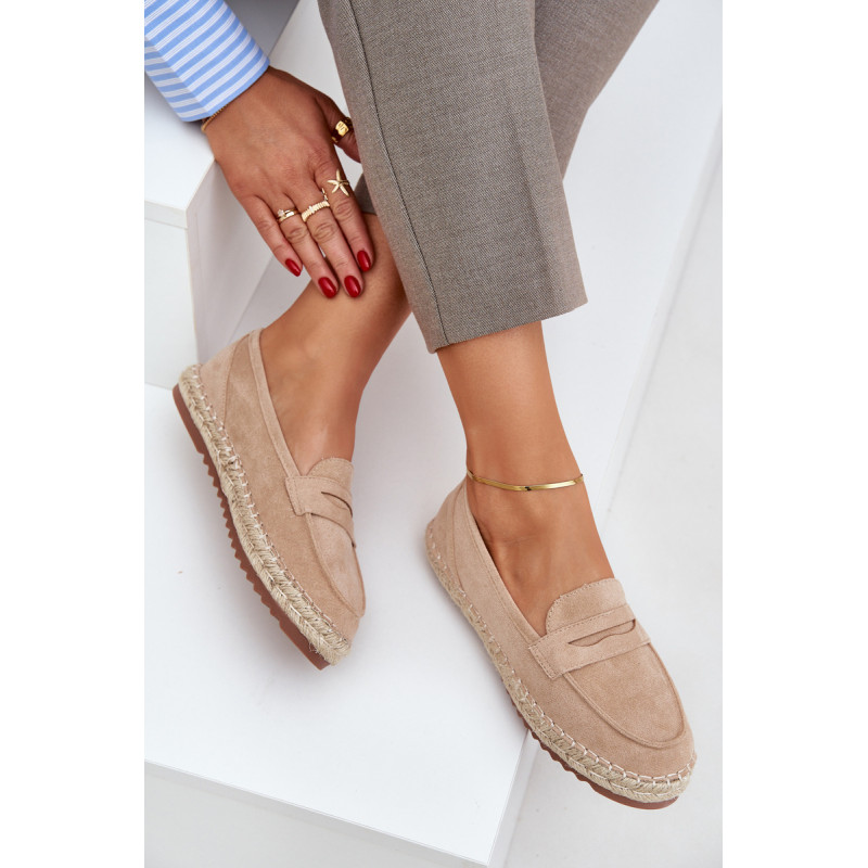 Moteriškos espadrilės iš ekologiškos odos yra lengvas ir stilingas pasirinkimas šiltoms dienoms. Įrengtos ant plokščio pado, jos užtikrina komfortą visą dieną. Papuoštos jute pynimu ir dirželiu su išpjova priekyje. Suapvalinti pirštai suteikia avalynei moterišką, subtilų išvaizdą. Puikiai tinka vasaros stiliams! Renkantis dydį, vadovaukitės dydžių lentele.