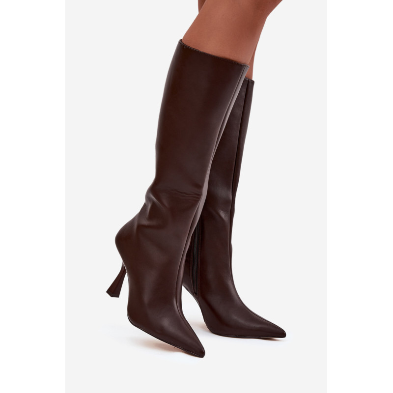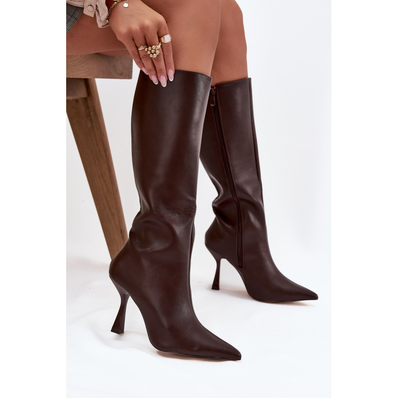 Moteriški ekologiški odiniai batai su klasikinio, elegantiško kirpimo. Modelis su smailiais priekiais ir aukštu kulnu, kuris plonina siluetą, o iki kelio siekianti viršutinė dalis išryškina kojas. Šoninis užtrauktukas leidžia lengvai užsidėti ir puikiai pritaikyti prie kojos, tinka vakariniams pasivaikščiojimams ir elegantiškoms progoms. Pasirinkdami dydį, vadovaukitės dydžių lentele. Renkantis dydį, vadovaukitės dydžių lentele.