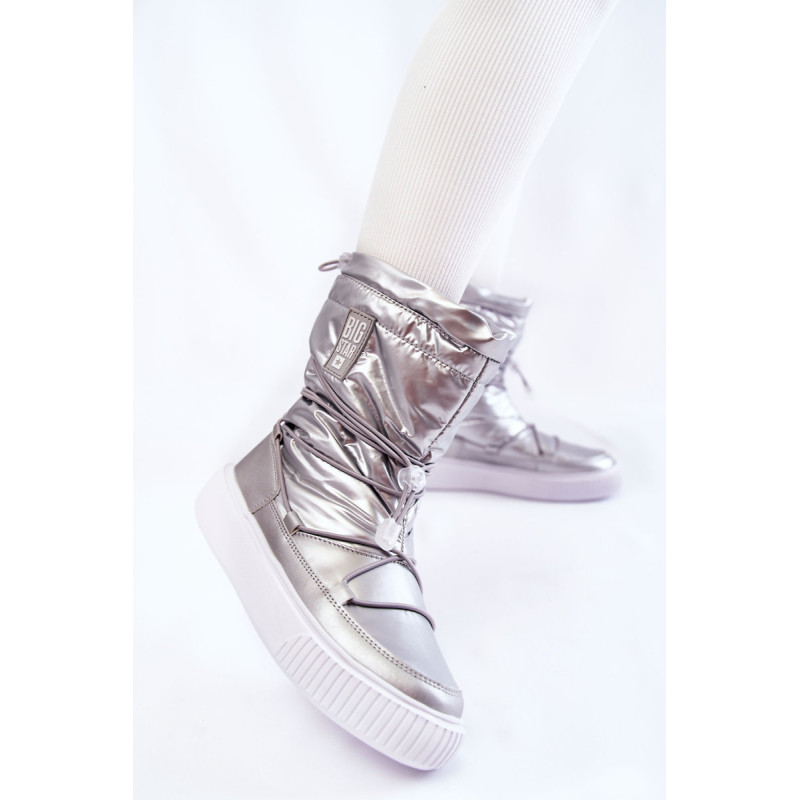 Unikalūs moteriški sniego batai yra pagaminti iš aukštos kokybės medžiagų. Jie turi malonią liesti izoliaciją kailio pavidalu. Be to, sniego batai turi audinį. Įtaisyta ant didžiulės platformos. „Big Star“ logotipas yra viršutinės dalies šone. Juos galima tinkamai priderinti prie kojos pločio dėl viršutinės dalies viršaus. Įdėklas pagamintas iš medžiagos. Šie batai turi standintą kulną. Renkantis dydį, naudokite dydžių lentelę.