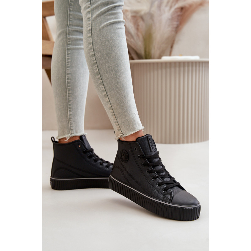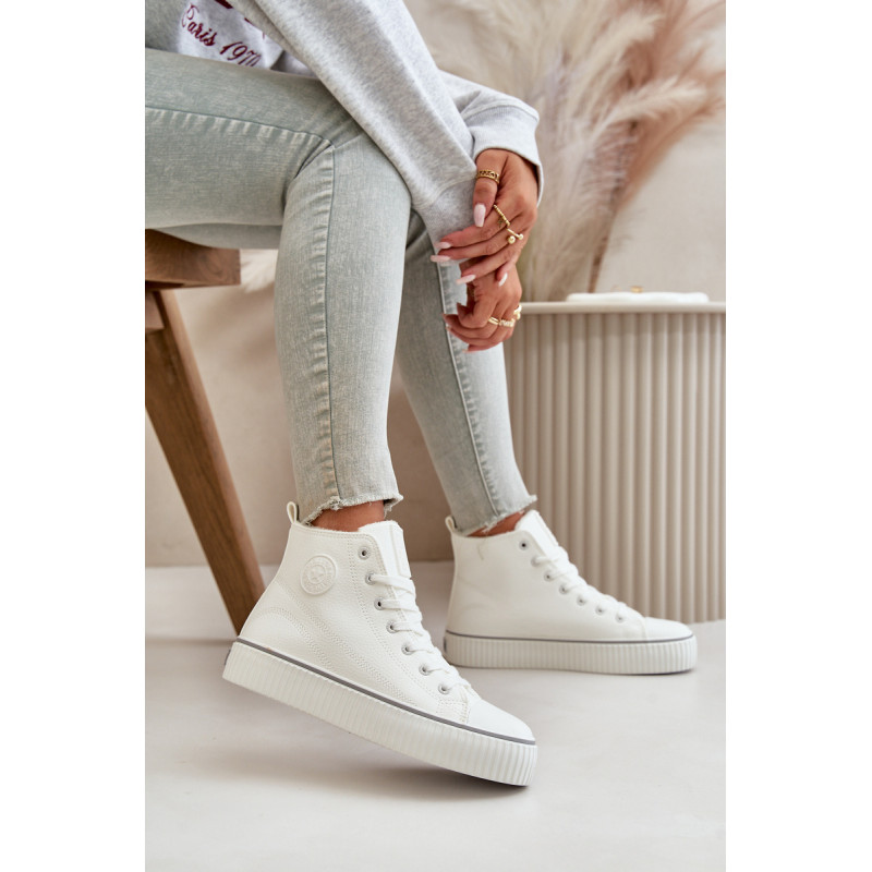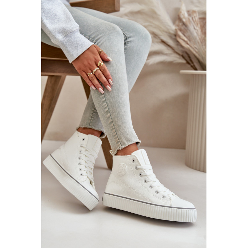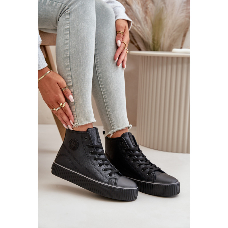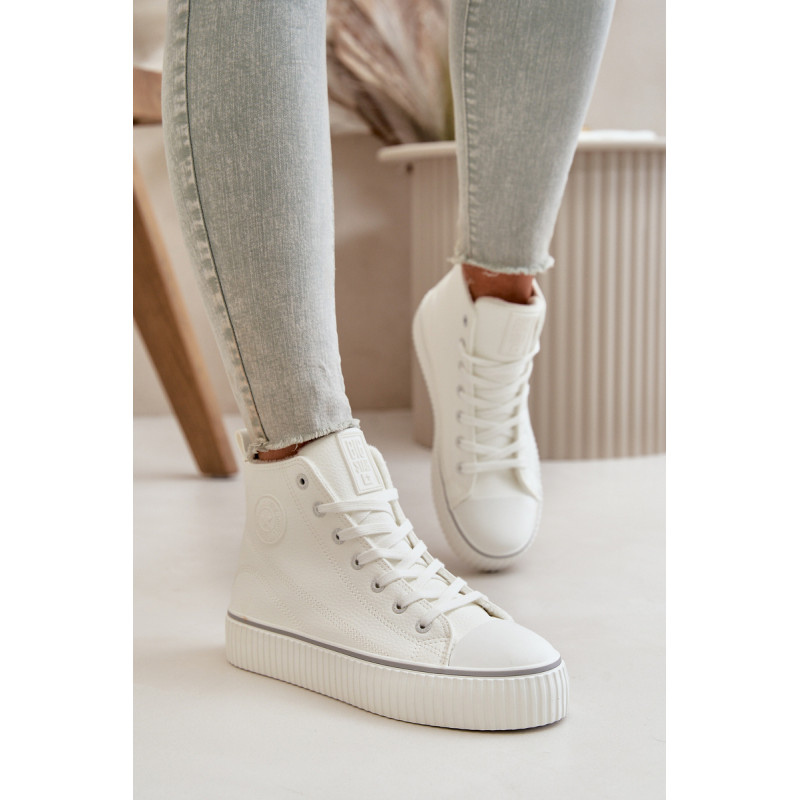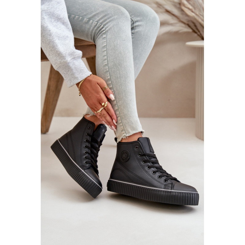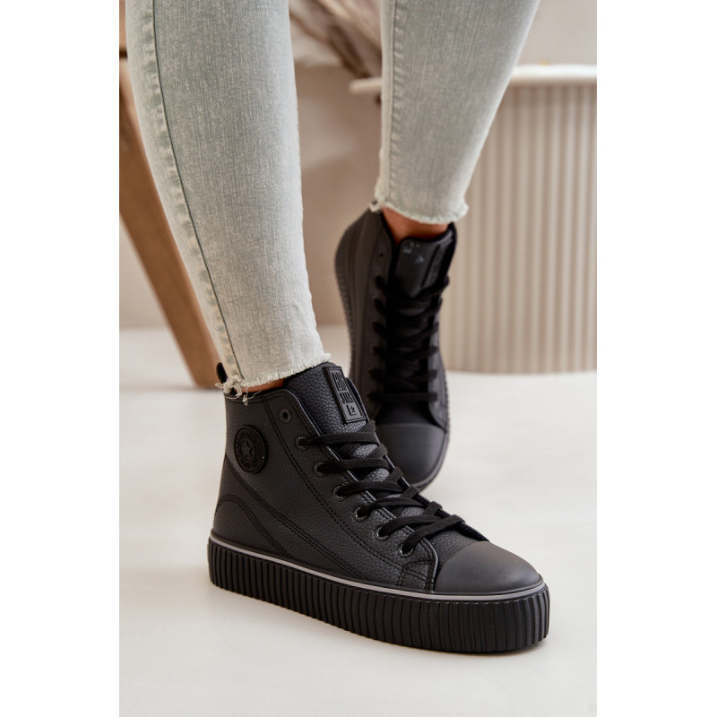 BIG STAR prekės ženklo moteriški sportbačiai, pastatyti ant platformos, pagamintos iš guminės medžiagos. Pagaminta iš eko odos. Užsegamas užtrauktuku ir papildomai turi raištelius. Vidus apšiltintas kailiu. Kojos pirštas sustingęs. Viršutinė dalis siekia kulkšnį. Būtinai peržiūrėkite visą mūsų BIG STAR batų kolekciją. Rinkdamiesi dydį, žr. dydžių lentelę.