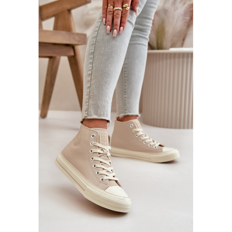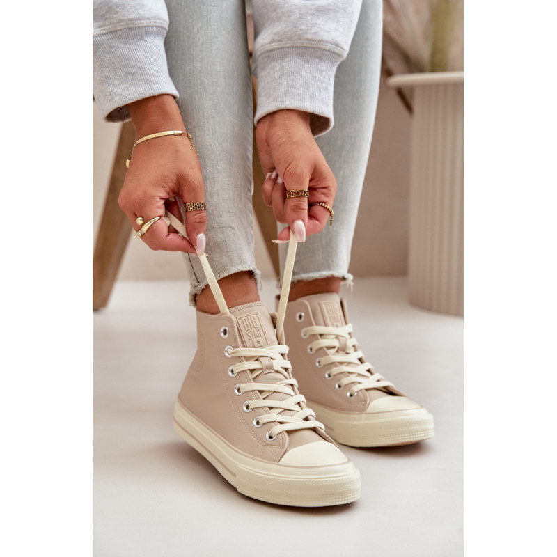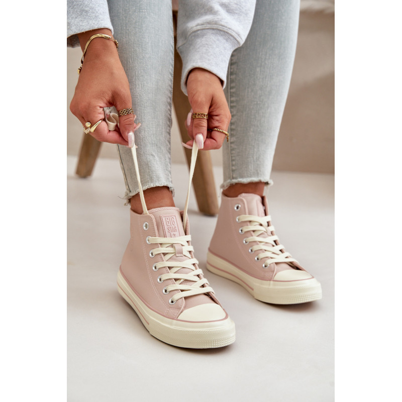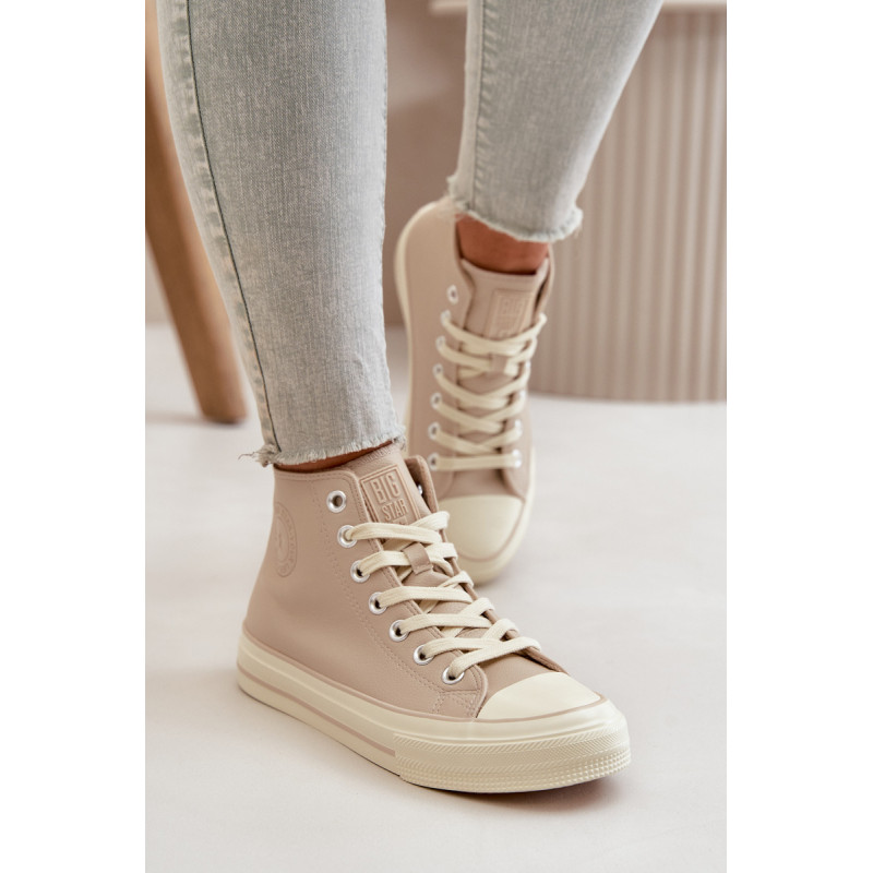 BIG STAR prekės ženklo moteriški sportbačiai su viršutine dalimi iki kulkšnių. Pagaminta iš eko odos. Pastatykite ant guminio pado. Pirštai suapvalinti. Vidus apšiltintas batų vilna. Būtinai peržiūrėkite visą mūsų BIG STAR batų kolekciją. Rinkdamiesi dydį, žiūrėkite dydžių lentelę.