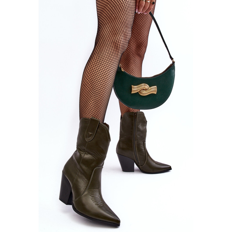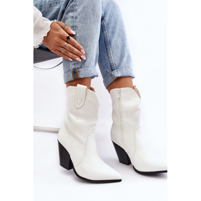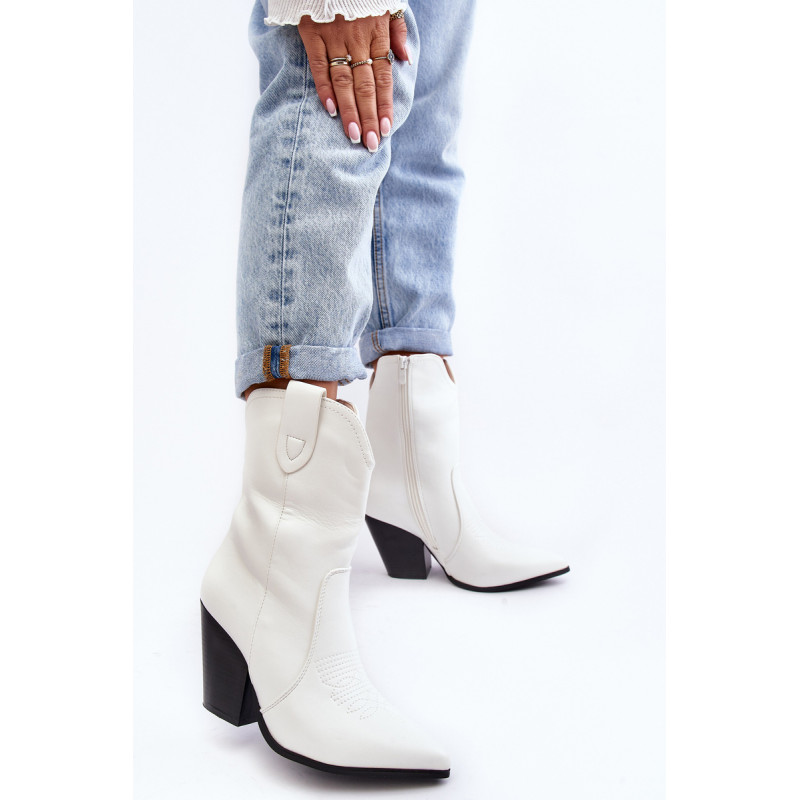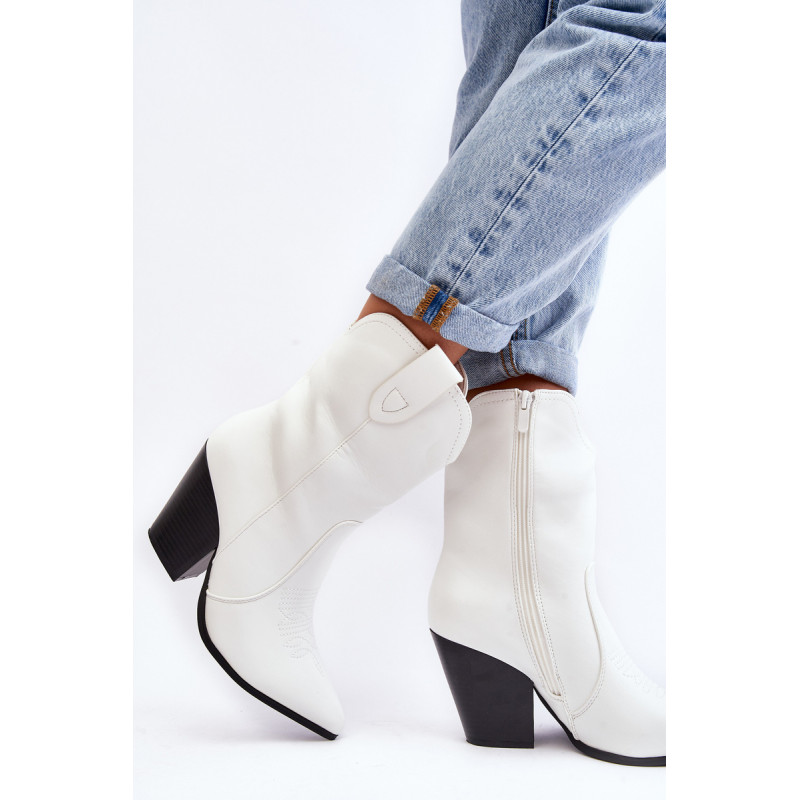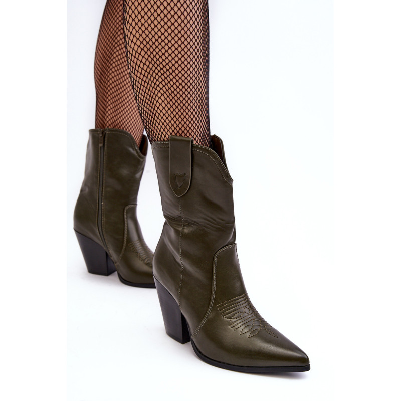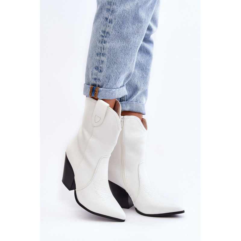 Moteriški kaubojiško stiliaus batai, pagaminti iš ekologiškos odos. Pastatykite ant aukštakulnio. Smailūs pirštai optiškai suplonins kojas. Minkštas eko odos vidpadis suteiks komforto dėvint. Šis modelis užsegamas užtrauktuku koto šone. Kojos pirštas standus. Rinkdamiesi dydį, vadovaukitės dydžių lentele.
