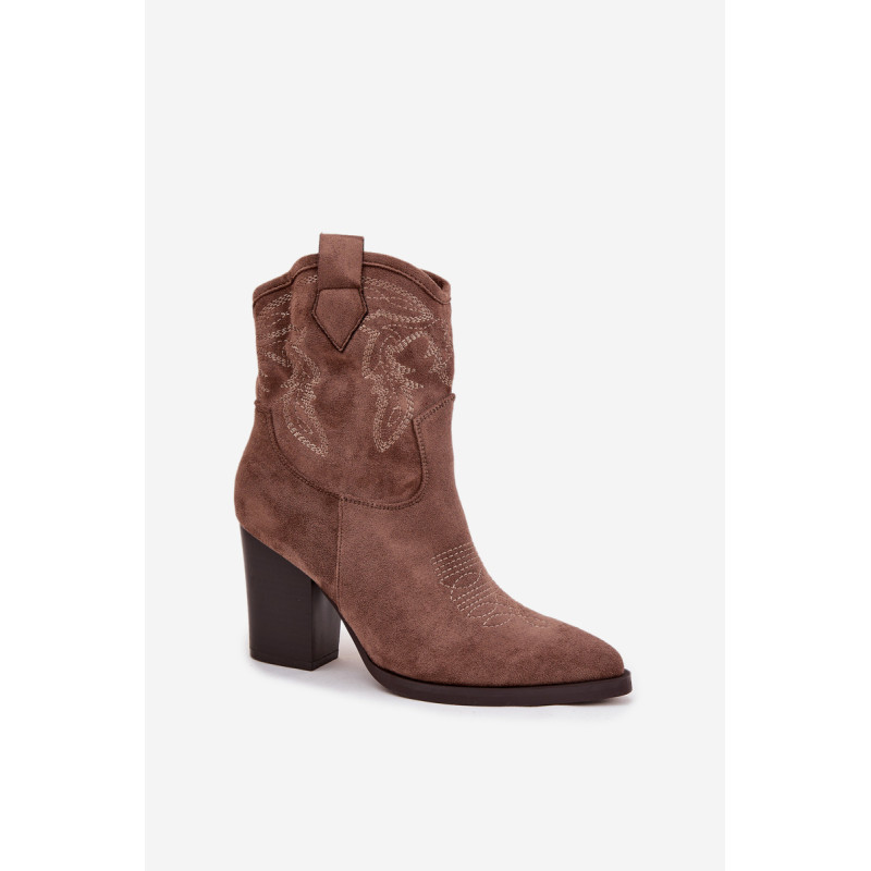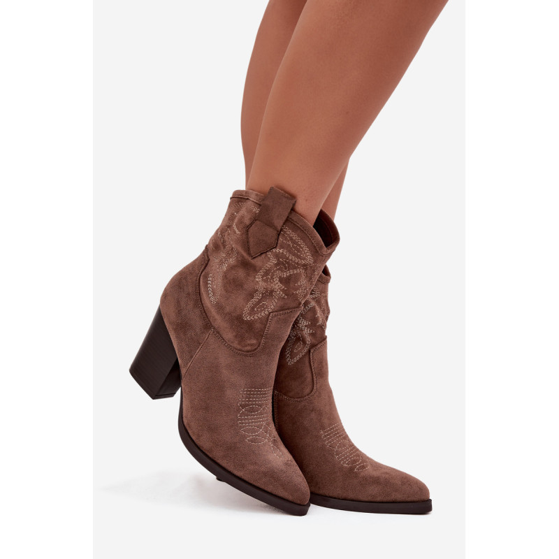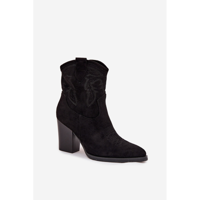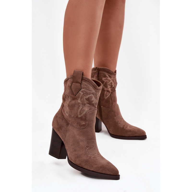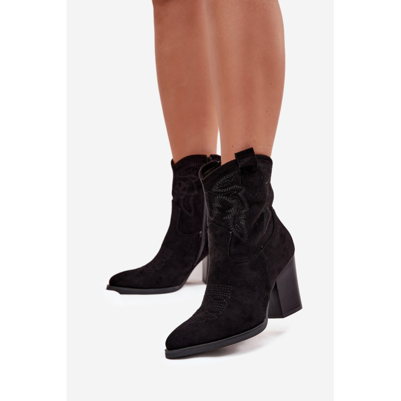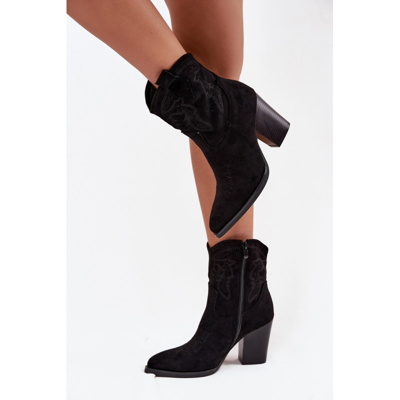 Moteriški kaubojų stiliaus aulinukai, pagaminti iš ekologinio veliūro. Modelis yra ant stabilaus stulpelio tipo kulno, kuris vizualiai ilginą siluetą. Smailūs priekiniai galai suteikia visumui moteriškumo charakterį, o dekoratyviniai siuviniai viršutinėje dalyje pabrėžia kaubojų išvaizdą. Patogi užsegimo su užtrauktuku sistema palengvina batų uždėjimą ir nusirengimą. Šie stilingi aulinukai puikiai papildo tiek kasdienius, tiek ir elegantiškesnius įvaizdžius, suteikdami jiems išraiškingumo ir charakterio. Renkantis dydį, vadovaukitės dydžių lentele.