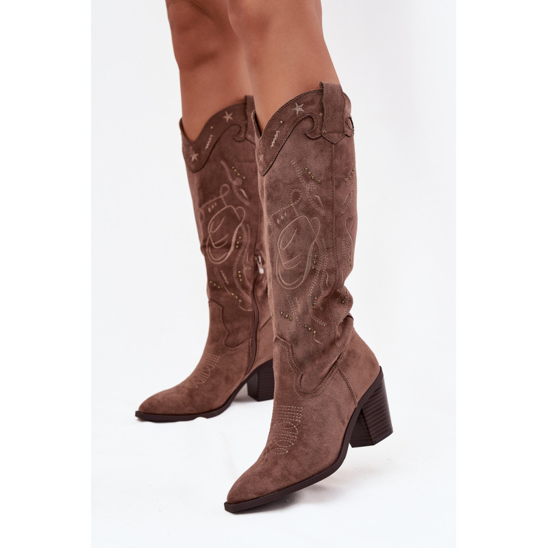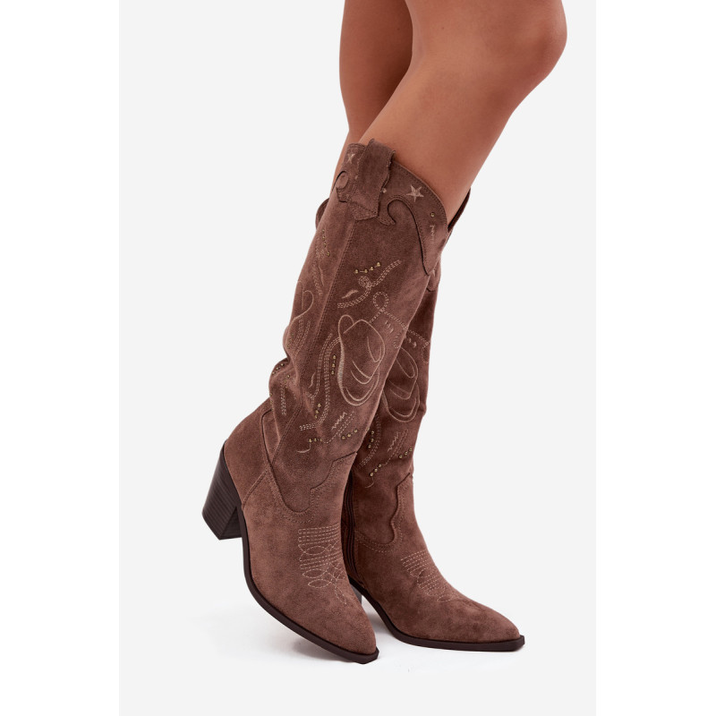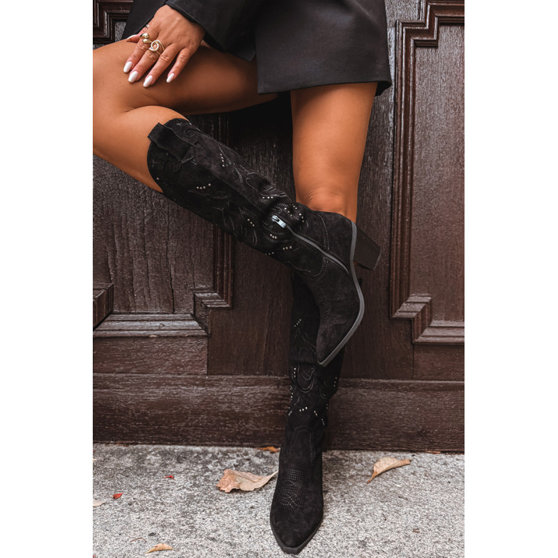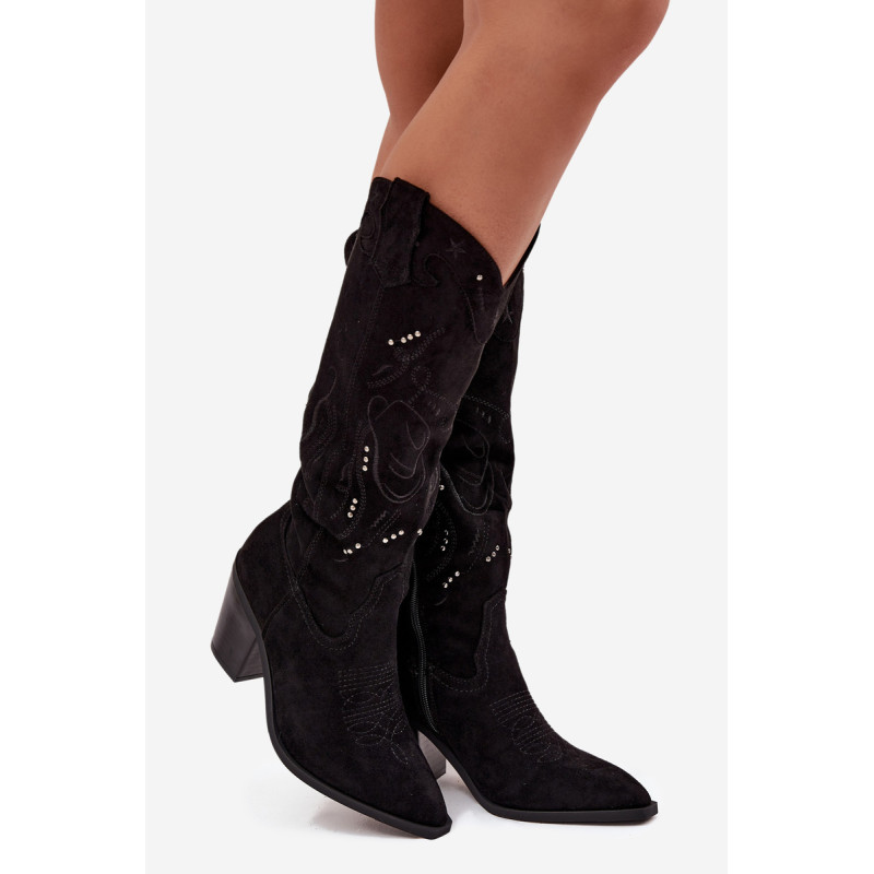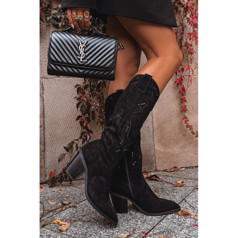 Moteriški kaubojų stiliaus auliniai batai, pagaminti iš ekologiško zomšos audinio, yra pasiūlymas, kuris sujungia klasikinį stilių su madingu, išraiškingu charakteriu. Paskutinėje, trumpesnėje kulniuko dalyje įrengti stabilūs, siauri kulniukai, kurie suteikia siluetui lieknumo ir tuo pačiu užtikrina patogumą vaikščiojant. Modelis pasižymi dekoratyvinėmis siūlėmis ir subtiliais auksiniais elementais. Mandalų formos nosys pabrėžia moterišką stilių, o praktiškas užtrauktukas apačioje palengvina užsidėjimą. Tai ideali avalynė rudens-žiemos stiliams – puikiai derės tiek su aptemptais džinsais, tiek su boho stiliaus suknelėmis. Rinkdamiesi dydį, vadovaukitės dydžių lentele. Renkantis dydį, vadovaukitės dydžių lentele.