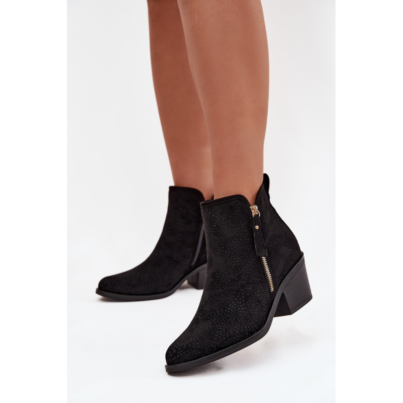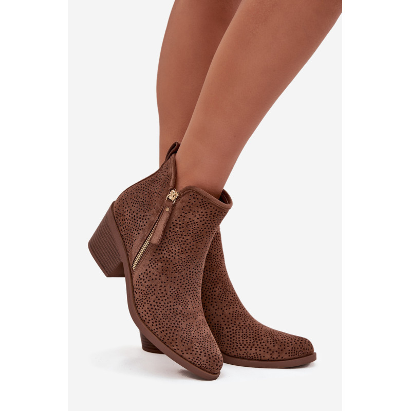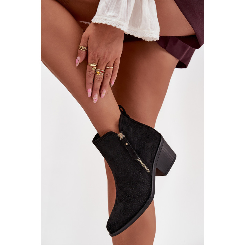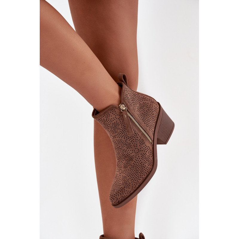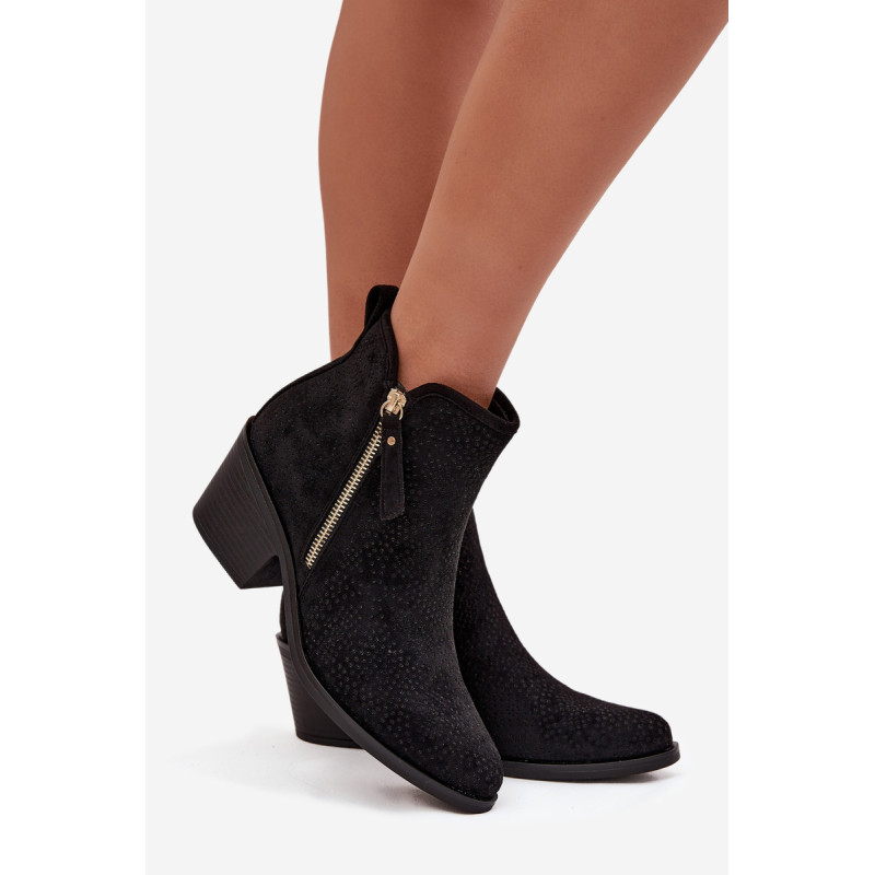 Moteriški kaubojų stiliaus auliniai batai iš prekės ženklo S.Barski. Pagaminti iš aukštos kokybės medžiagų, atrodo elegantiškai ir patraukia dėmesį detalėmis. Modelis yra ant stabilių, siaurų kulnų, kurie užtikrina komfortą ir lengvumą vaikščiojant, tuo pačiu subtiliai lieknina siluetą. Migdolo formos nosys suteikia batams moterišką charakterį, pabrėždamos grakščią pėdos liniją. Auliniai batai turi praktišką užtrauktuką, kuris palengvina jų uždėjimą ir nuėmimą, ir papildomas dekoratyvinis užtrauktukas veikia kaip stilingas akcentas, suteikiantis modeliui šiuolaikišką ir originalų vaizdą. Puikiai tinka kasdieniam stiliui ir boho įkvėptoms aprangoms. Renkantis dydį, vadovaukitės dydžių lentele.