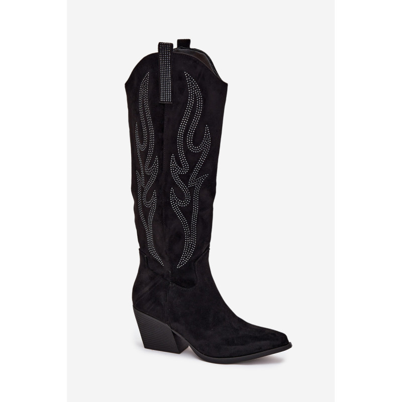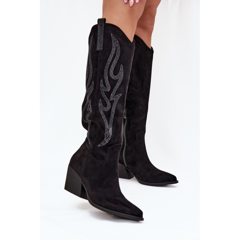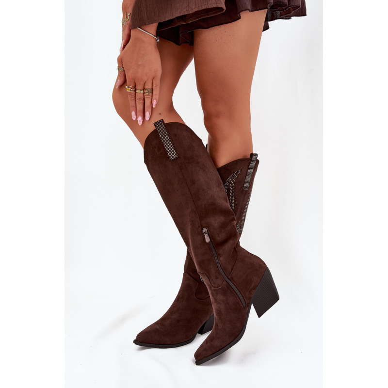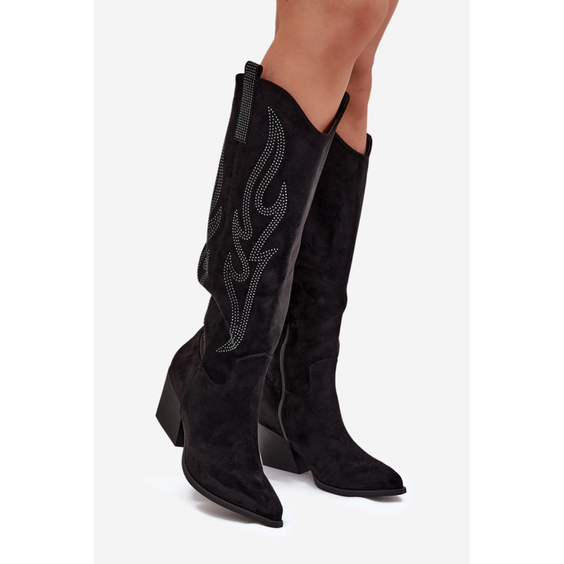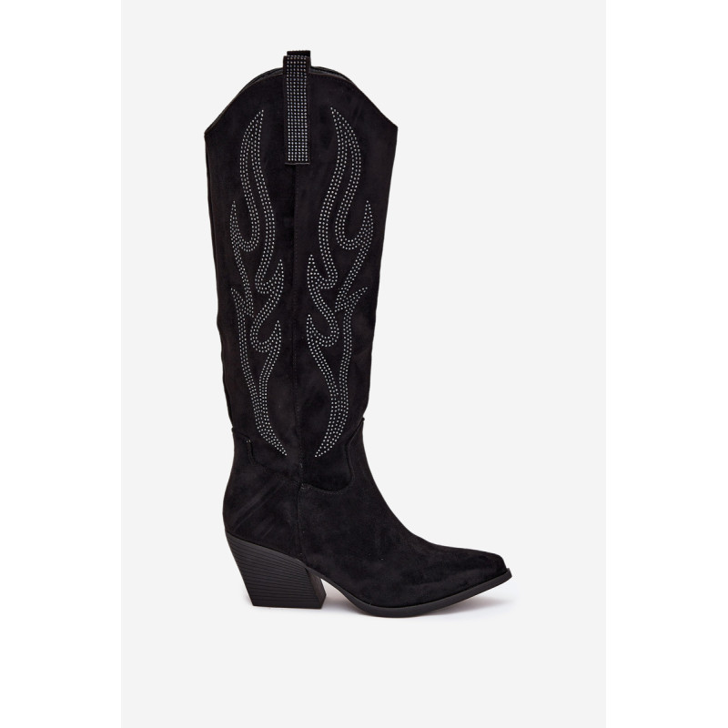 Moteriški batai iš eko-suede, įrengti ant bloko kulno, yra stilingas pasiūlymas vėsesniems dienoms. Viršus siekia iki kelio, suteikdamas klasikinį vaizdą, o dekoracijos jiems suteikia unikalų charakterį. Smaili nosis optiškai pailgina kojas, o modelis su papildomu užtrauktuku batų apačioje užtikrina komfortą ir lengvą užsidėjimą. Puikiai tinka elegantiškiems ir kasdieniškiems stiliams, idealiai tinka žieminiams išvykimams. Renkantis dydį, vadovaukitės dydžių lentele.