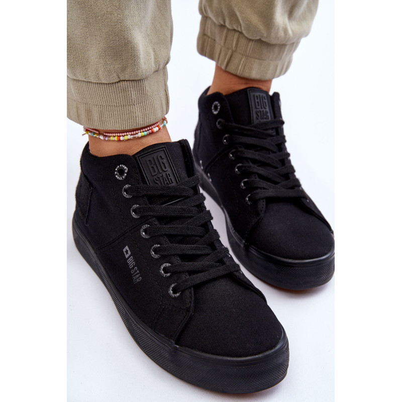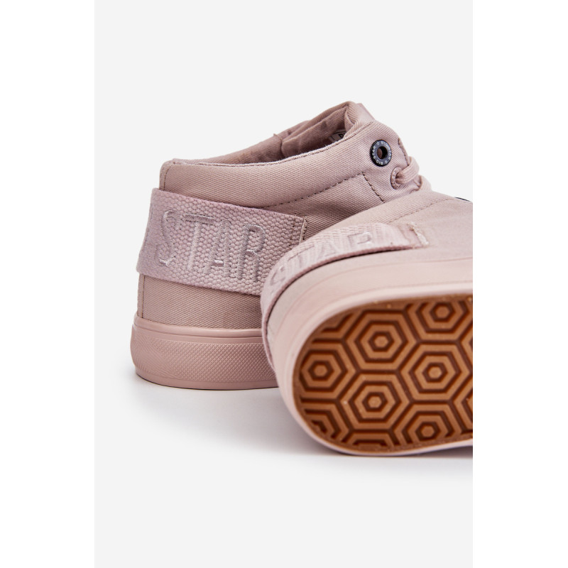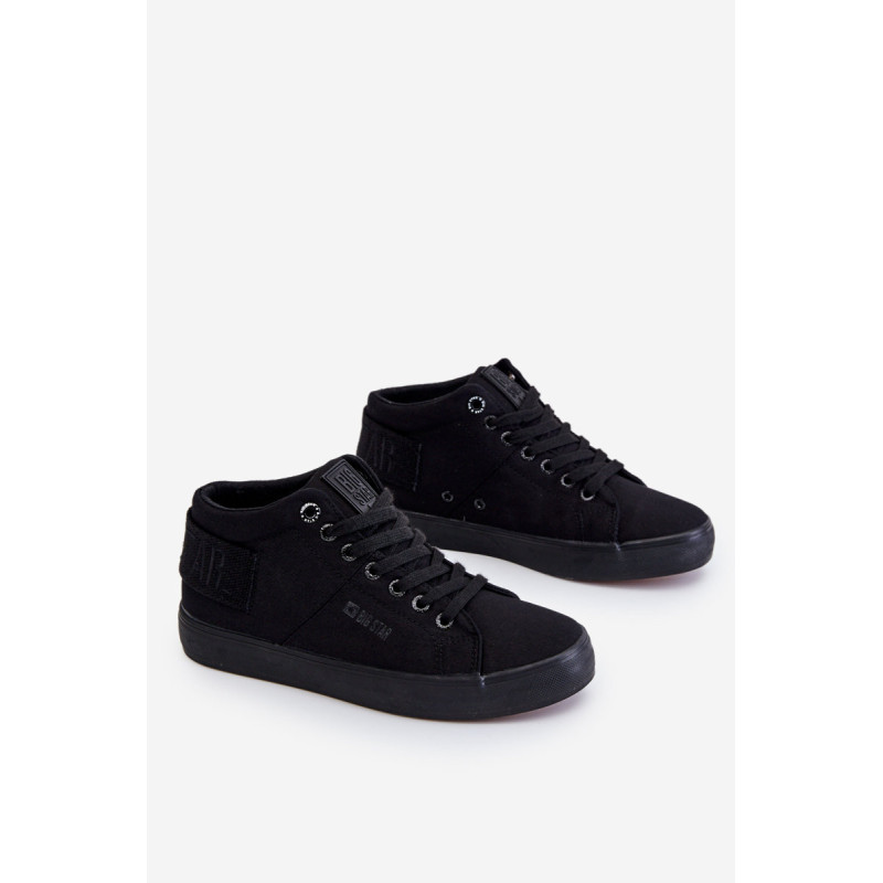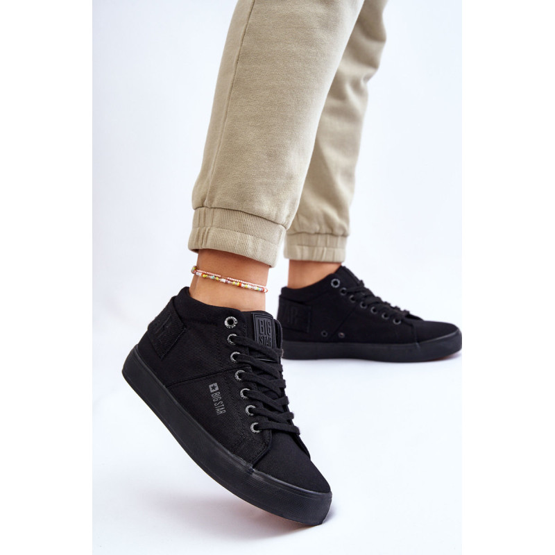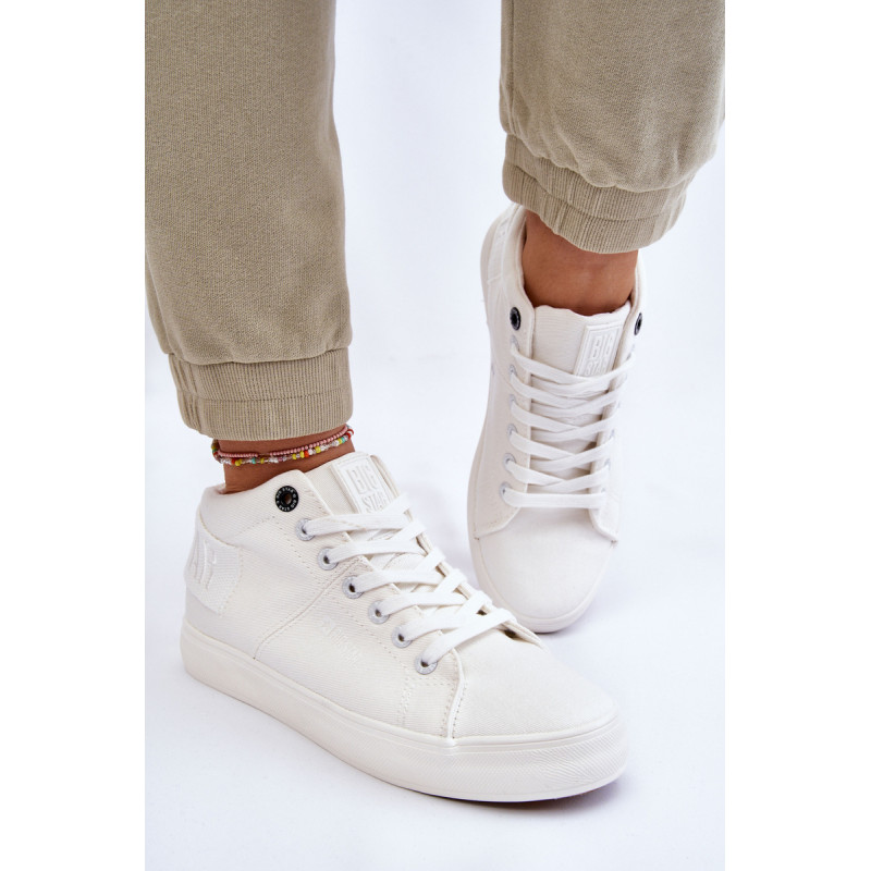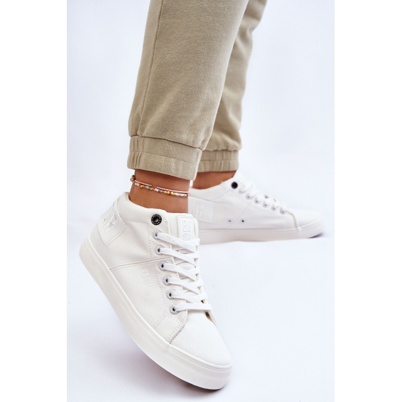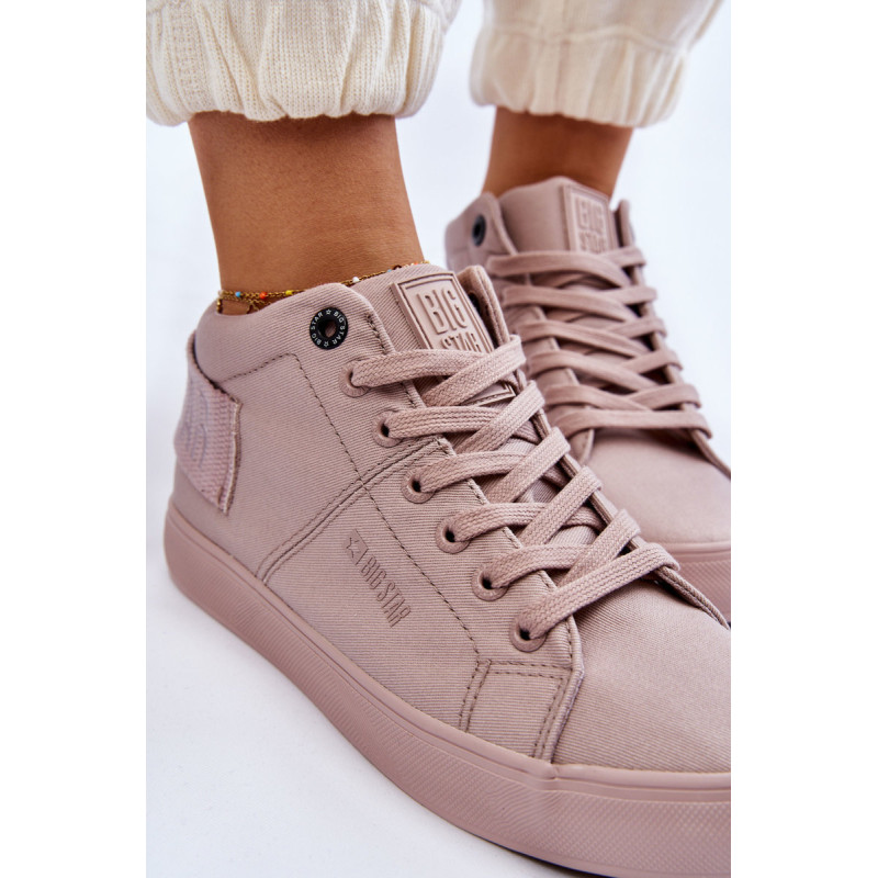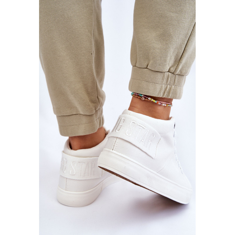 Moteriški aukšti sportbačiai Big Star yra pagaminti iš tekstilės. Batai pastatyti ant guminės platformos su neslidžiu padu. Viršutinės dalies gale yra dekoratyvinė juostelė su Big Star logotipu. Sutvirtintas kulno skaitiklis užtikrins tinkamą pėdos stabilizavimą. Šis modelis iki kulkšnių puikiai tiks pavasario ir rudens sezonui.Rinkdamiesi dydį, vadovaukitės dydžių lentele.