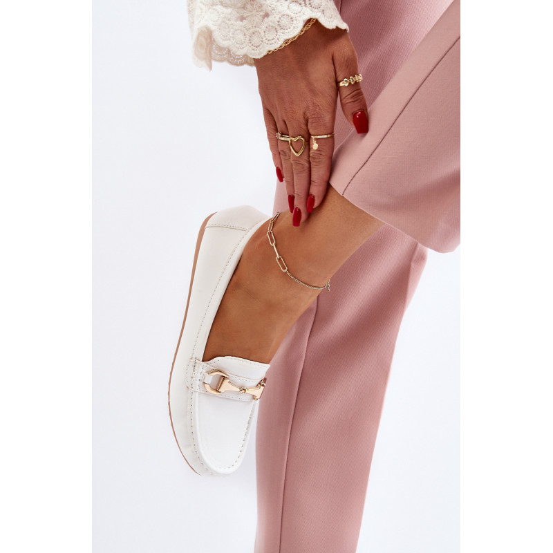 Moteriški mokasinai – tai batai, kurie turėtų būti kiekvienos moters garderobe. Pagaminta iš eko odos. Priekyje puoštas dirželis su auksiniu ornamentu. Suapvalinti kojų pirštai suteikia jiems subtilaus žavesio. Šis klasikinis stilius tikrai papildys daugelį pavasario-vasaros stilizacijų! Rinkdamiesi dydį, žiūrėkite dydžių lentelę.