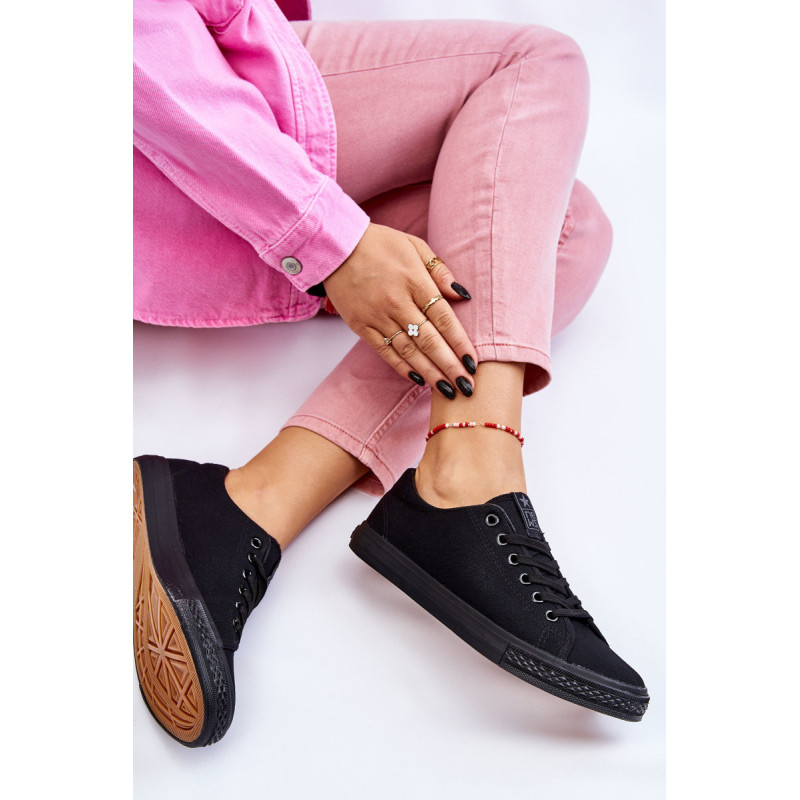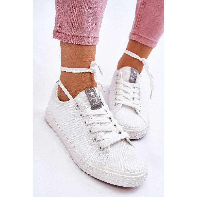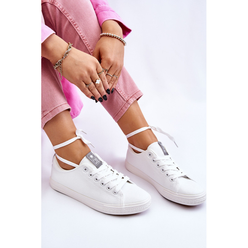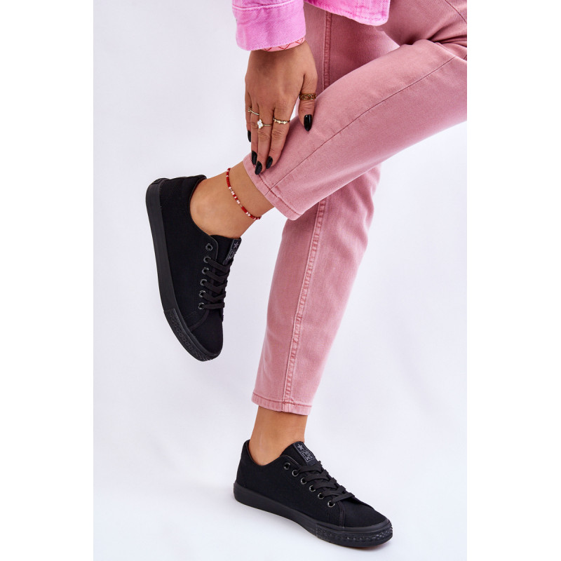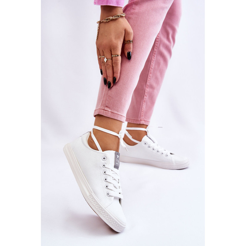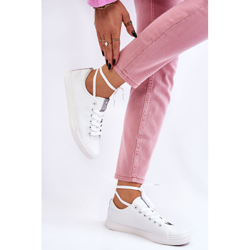 Klasikiniai moteriški sportbačiai iš tekstilinės medžiagos su viršutiniu kulkšnies viršumi. Batai turi guminį padą, kuris papildomai neslysta. Nesenstantis modelis, kurį turėtumėte turėti savo garderobe! Suapvalinta nosis. Patogus, medžiaginis vidpadis užtikrins komfortą naudojimo metu. Modelis klasikiniu būdu surištas plokščiais raišteliais. Renkantis dydį, naudokite dydžių lentelę.