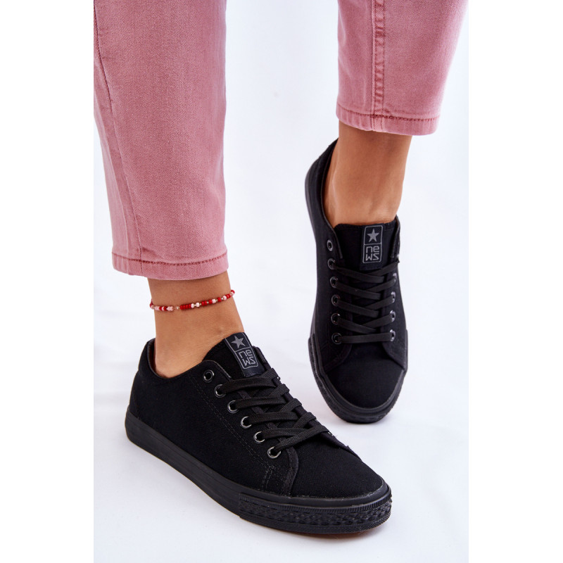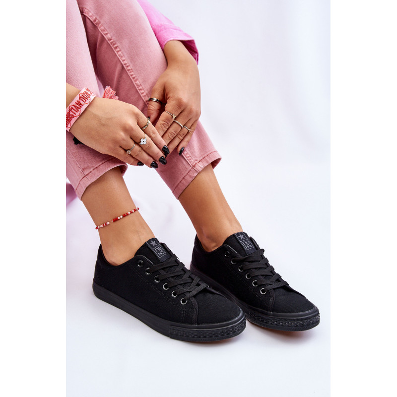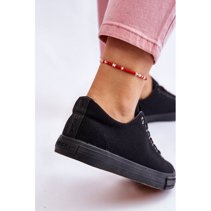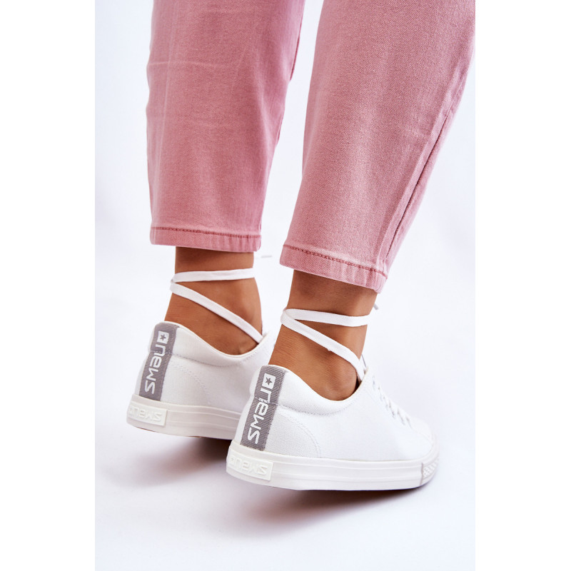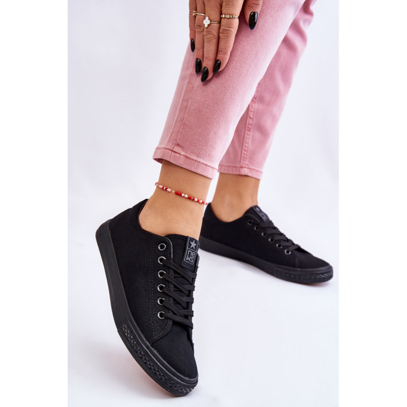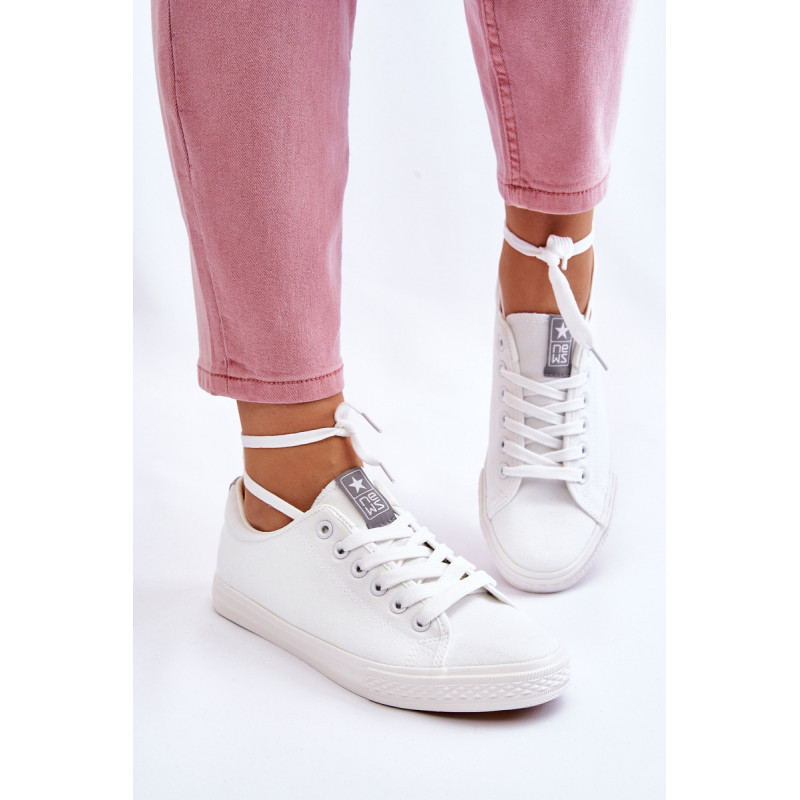 Klasikiniai moteriški sportbačiai iš tekstilinės medžiagos su viršutiniu kulkšnies viršumi. Batai turi guminį padą, kuris papildomai neslysta. Nesenstantis modelis, kurį turėtumėte turėti savo garderobe! Suapvalinta nosis. Patogus, medžiaginis vidpadis užtikrins komfortą naudojimo metu. Modelis klasikiniu būdu surištas plokščiais raišteliais. Renkantis dydį, naudokite dydžių lentelę.
