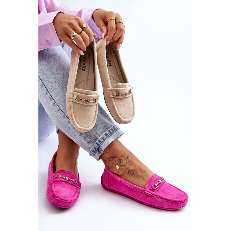 Moteriški mokasinai puikiai tinka įvairioms progoms! Jie pagaminti iš malonios liesti ekologiškos zomšos. Šio modelio priekyje yra dekoratyvinis elementas, pagamintas iš plastiko. Mokasinai yra ant neslystančio pado. Minkštas vidpadis iš eko odos suteiks patogumo naudojant batus. Be to, jis yra subtiliai perforuotas. Renkantis dydį, žiūrėkite dydžių lentelę.