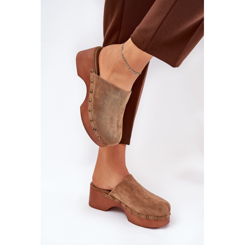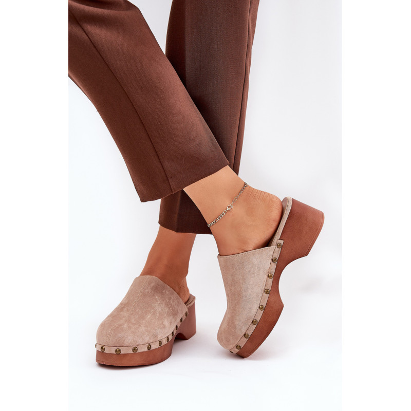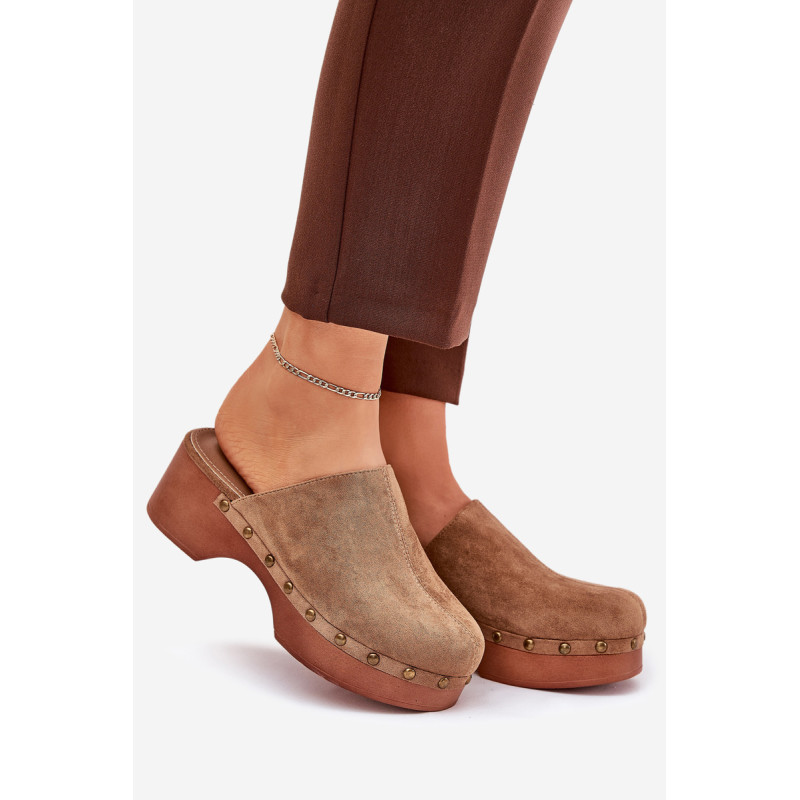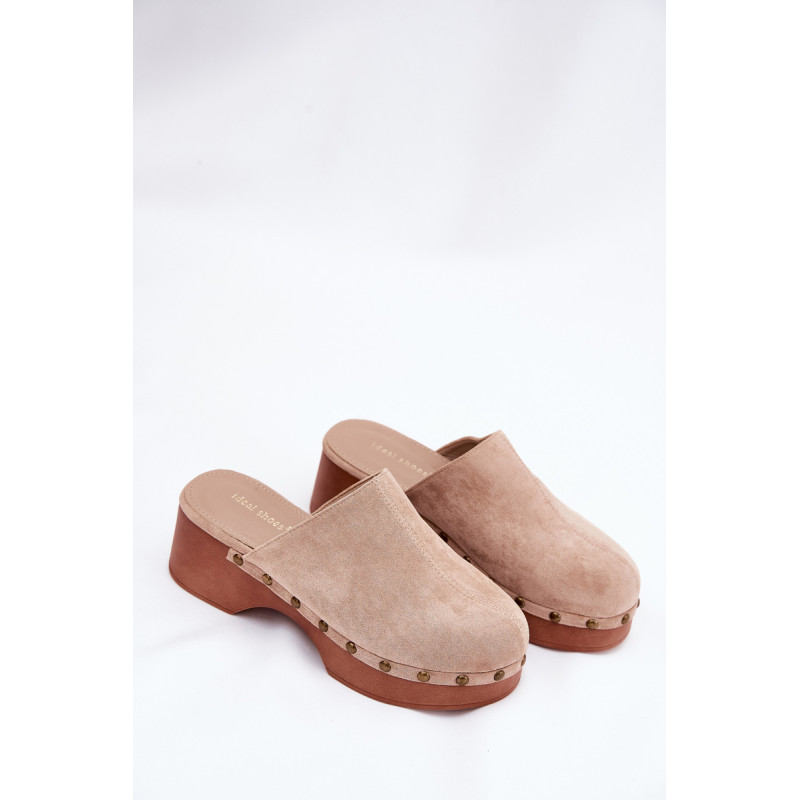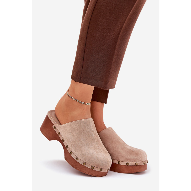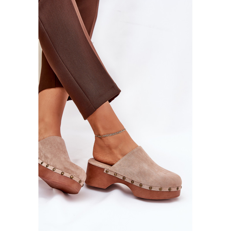 Lengvi moterų šlepetės, pagamintos iš ekologiško zomšo. Įmontuotos ant platformos ir pakulnės. Papuošti kalnų akmenimis, kurie suteikia jiems madingą ir unikalų pobūdį. Viduje yra minkšta ekologiškos odos įdėklas, garantuojantis komfortą visą dieną. Šlepetės turi uždarus, apvalius pirštus. Puikiai tinka kasdieniam dėvėjimui, puikiai dera su vasaros suknelėmis, sijonais ir kelnių. Renkantis dydį, vadovaukitės dydžių lentele.