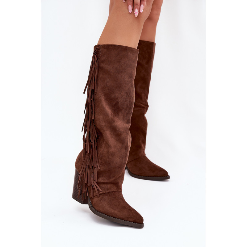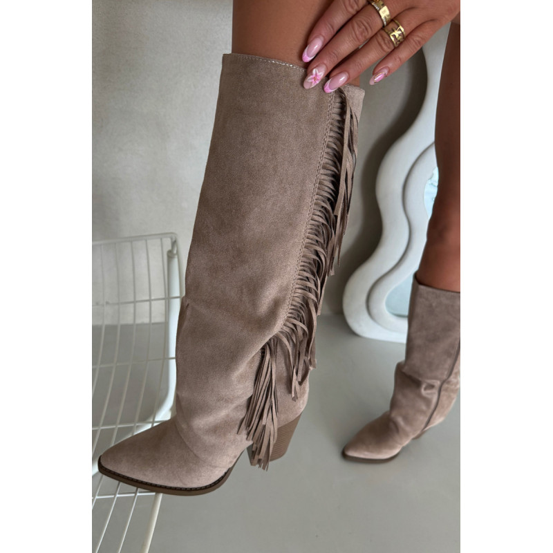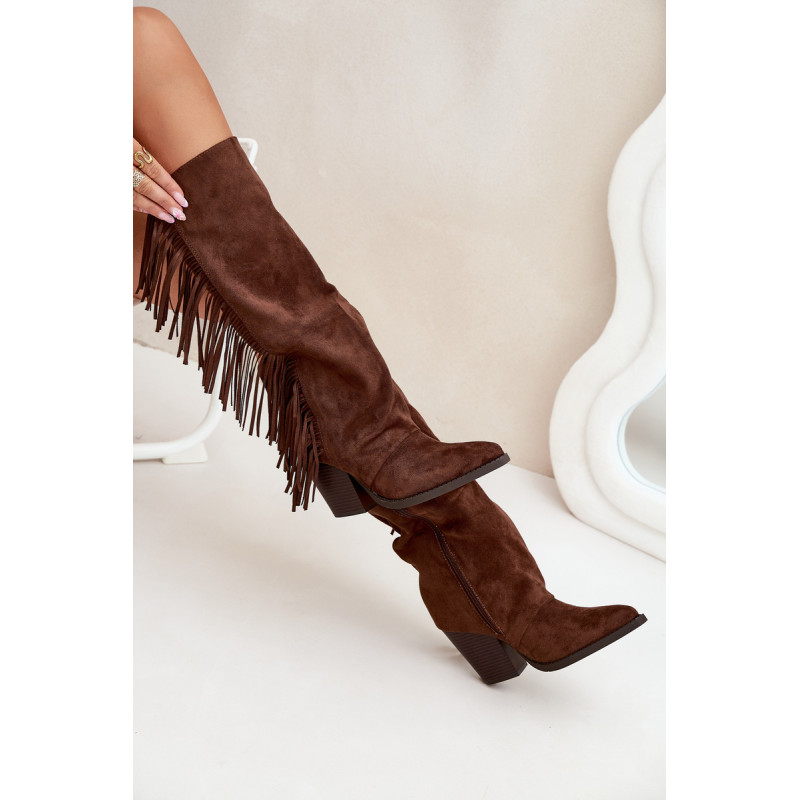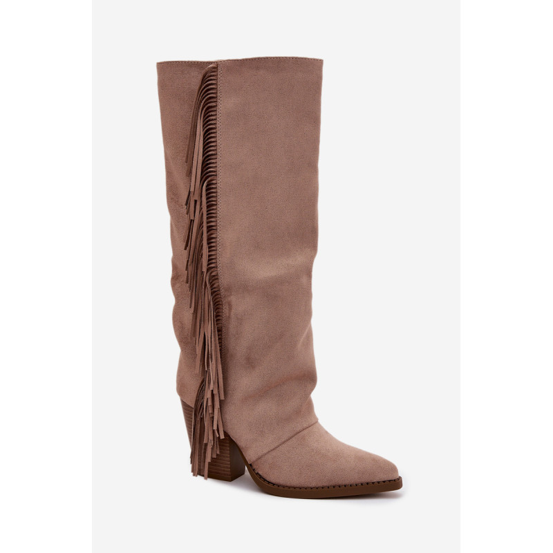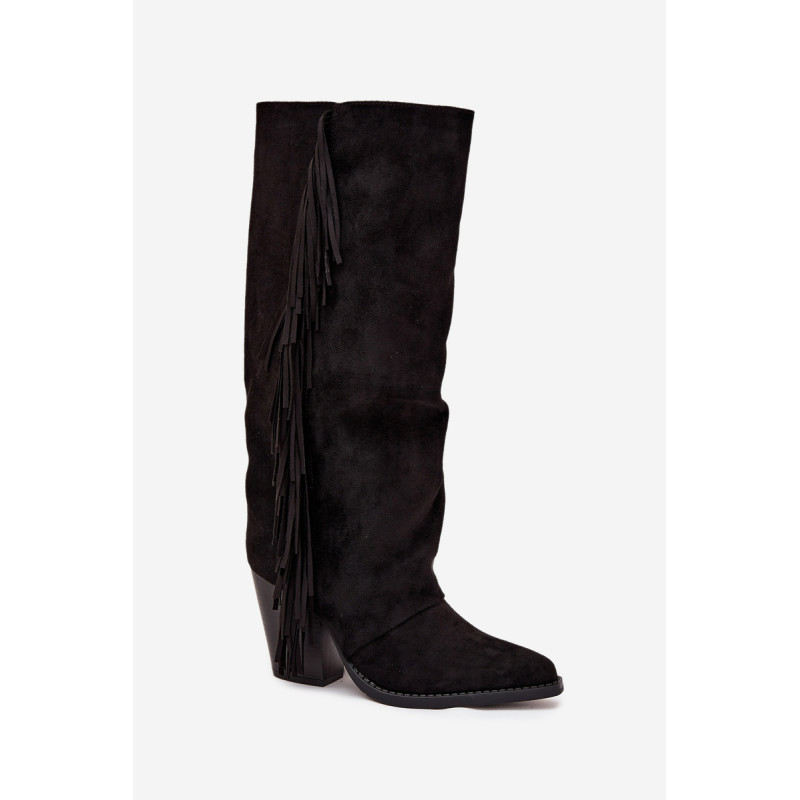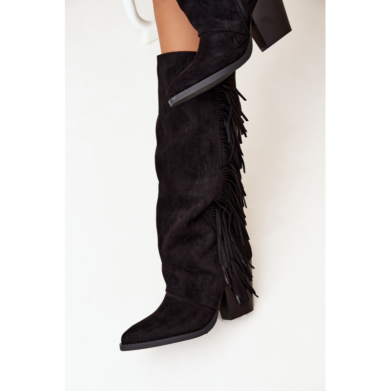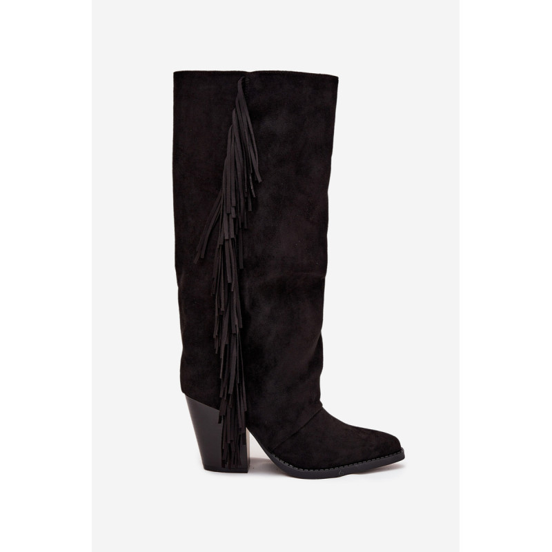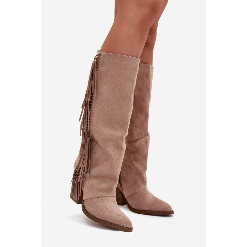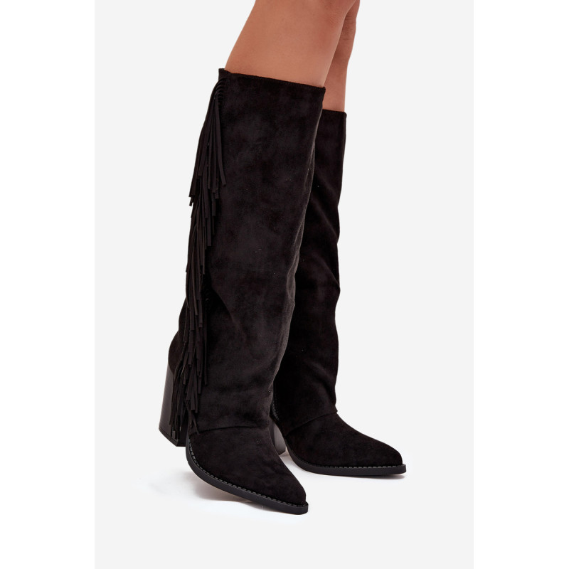 Moteriški iki kelių cowboy batai, pagaminti iš ekologiško aksomo, yra madingas pasiūlymas daugeliui stilių. Blokinis kulnas užtikrina komfortą, o užtrauktukas palengvina užsidėjimą. Smailūs pirštai. Šoninės kutai suteikia šiek tiek laisvumo ir boho charakterio. Puikiai tinka kasdieniams stiliams, jie puikiai derinami su suknelėmis, sijonais ir kelnėmis, sukuriant modernų cowboy įvaizdį. Renkantis dydį, vadovaukitės dydžių lentele.