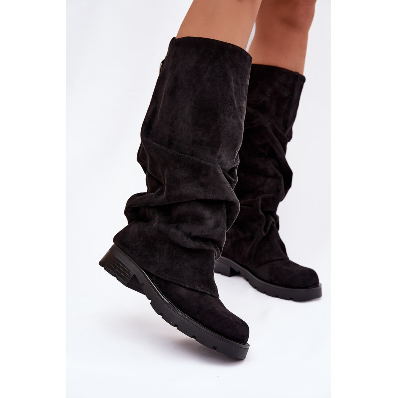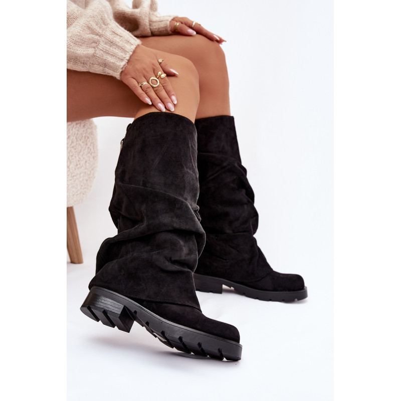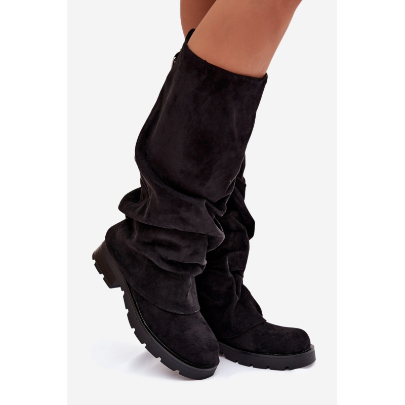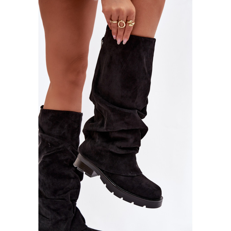 Moteriški auliniai batai su apverčiu viršumi yra vienas iš pagrindinių žiemos tendencijų. Pagaminti iš ekologiškos odos. Pastatyti ant platformos su masyviu kulnu. Pamušti avalyne su antklode, jie užtikrina komfortą ir šilumą šaltomis dienomis. Patogu užsidėti dėl užsegimo su užtrauktuku, papildomas sidabrinis užtrauktukas ir diržas su sagtimi viršaus dalyje suteikia jiems madingą, išraiškingą charakterį. Puikiai tinka tiek kasdieniam nešiojimui, tiek elegantiškesniems stiliams. Pasirinkite dydį pagal dydžių lentelę. Renkantis dydį, vadovaukitės dydžių lentele.
