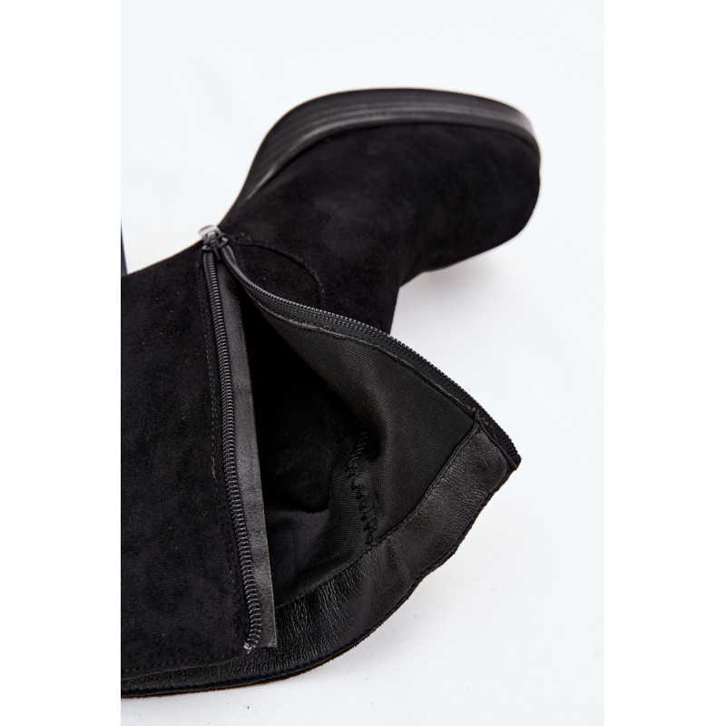 Moteriški auliniai batai iš ekologinio zomšiaus yra elegantiškas pasirinkimas rudens-žiemos sezonui. Modelis su stabiliu kubo formos kulnu užtikrina patogumą ir užtikrintą žingsnį, taip pat subtiliai lieknina siluetą. Batai užsegami užtrauktuku, kas palengvina jų užsidėjimą ir nusiėmimą. Suapvalinti priekiniai galiukai suteikia visumai klasikinį, moterišką charakterį. Tai universali avalynė, puikiai tinka tiek kasdieniam dėvėjimui, tiek elegantiškesniems stiliams. Renkantis dydį, prašome vadovautis dydžių lentele. Renkantis dydį, vadovaukitės dydžių lentele.