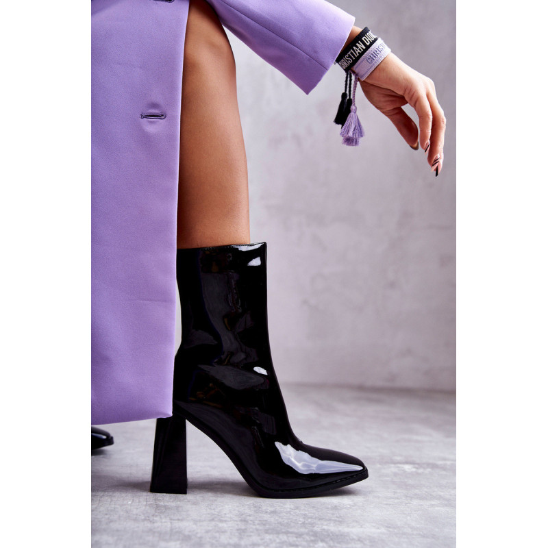 Nuostabūs batai – iš lakinės eko odos pagaminti batai pavogs daugelio aukštakulnių mėgėjų širdį! Modelis iki blauzdos. Šone užsegamas užtrauktuku. Nustatyti ant kulno stulpelio pavidalu. Viduje jie buvo izoliuoti malonia liesti antklode. Be to, kulno skaitiklis yra standesnis. Jų negali trūkti jūsų garderobe! Renkantis dydį, naudokite dydžių lentelę.
