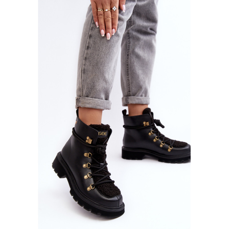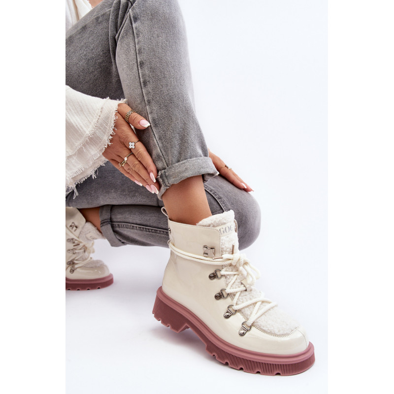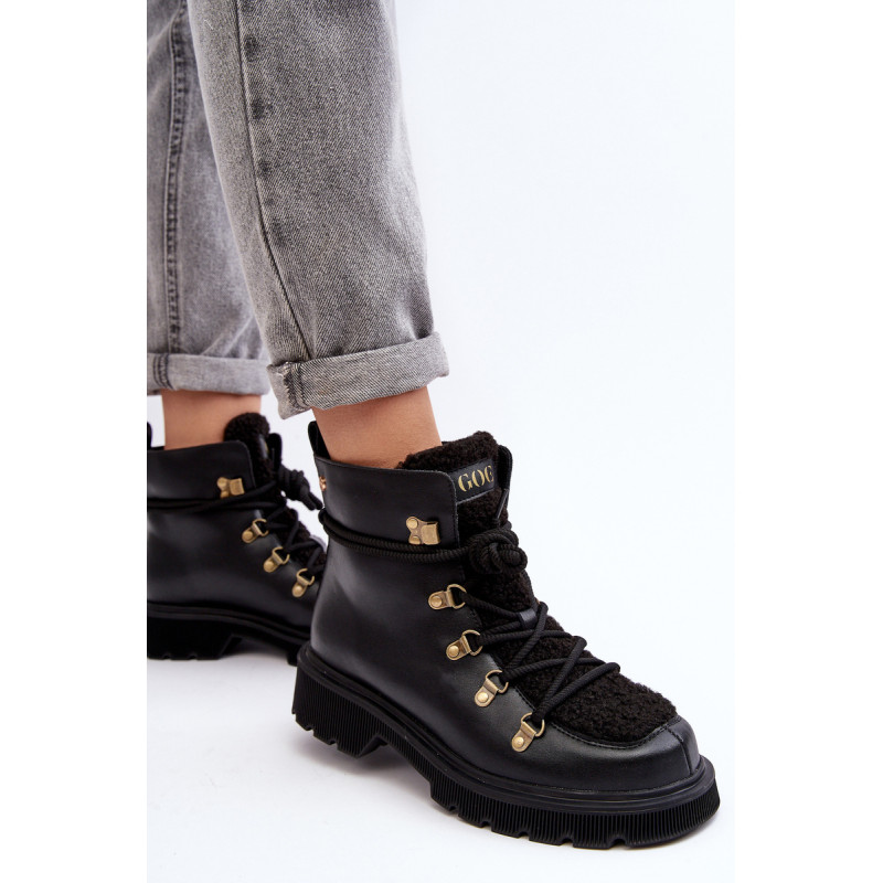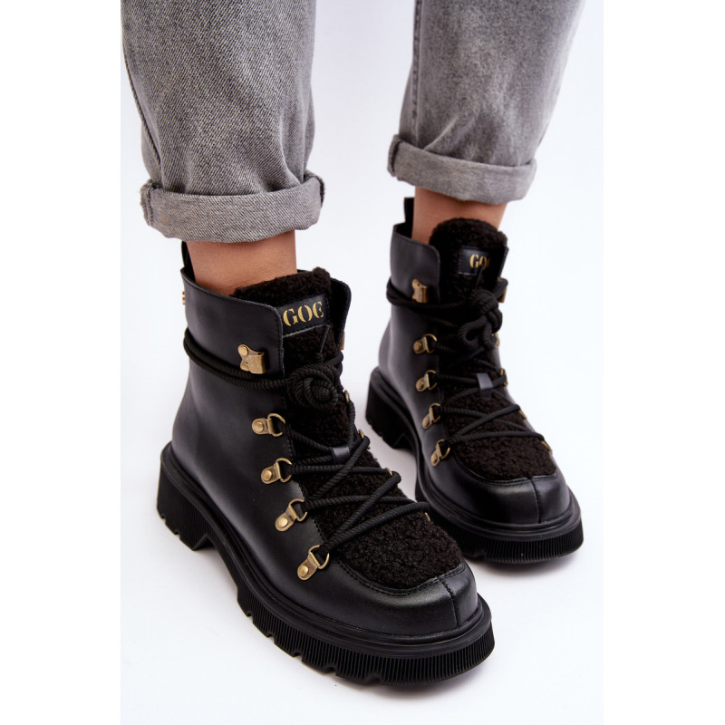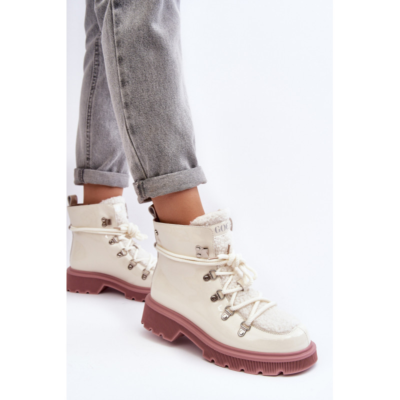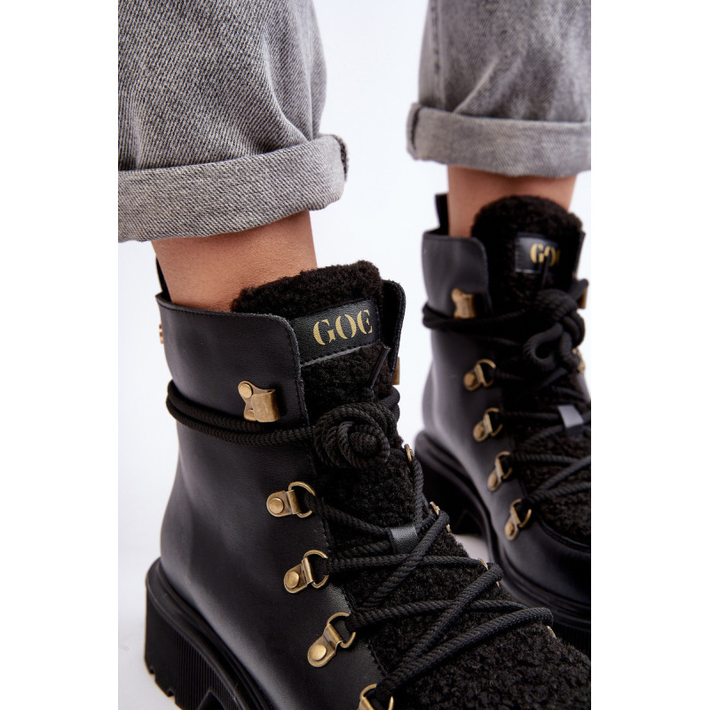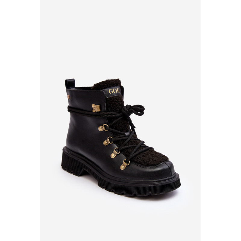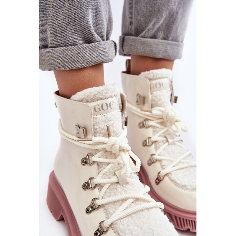 Moteriški GOE prekės ženklo batai. Pagaminta iš natūralios odos. Nustatykite ant plokščio kulno. Suvarstomas modelis. Priekis puoštas kailiuku. Apvalūs kojų pirštai. Sustiprinta pirštų dangtelis. Vidus apšiltintas batų pamušalu. Klasikinis modelis, kurį galite naudoti prie daugelio rudens-žiemos aprangų! Renkantis dydį, vadovaukitės dydžių lentele.