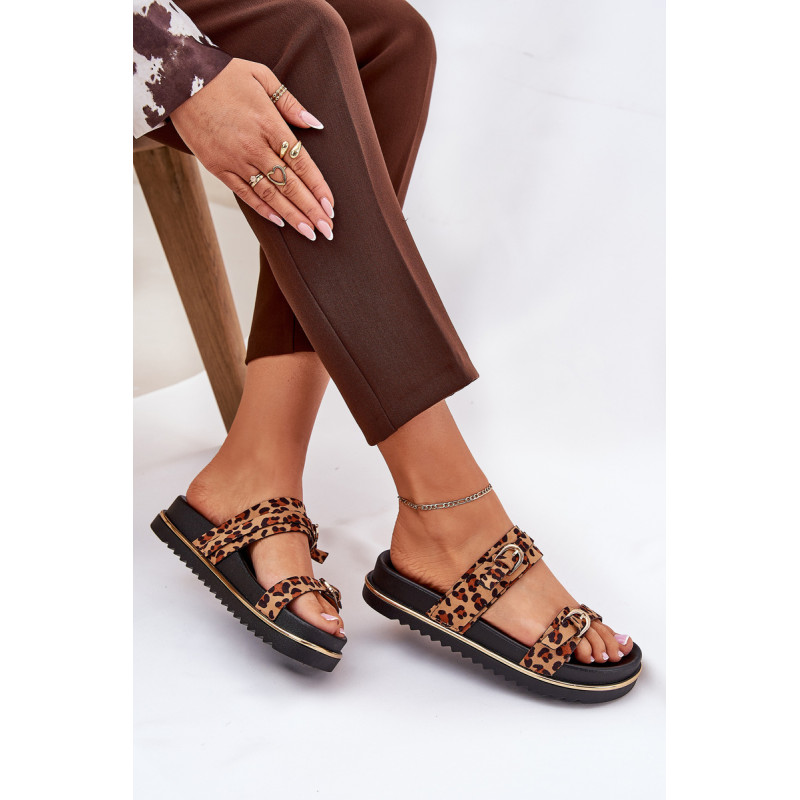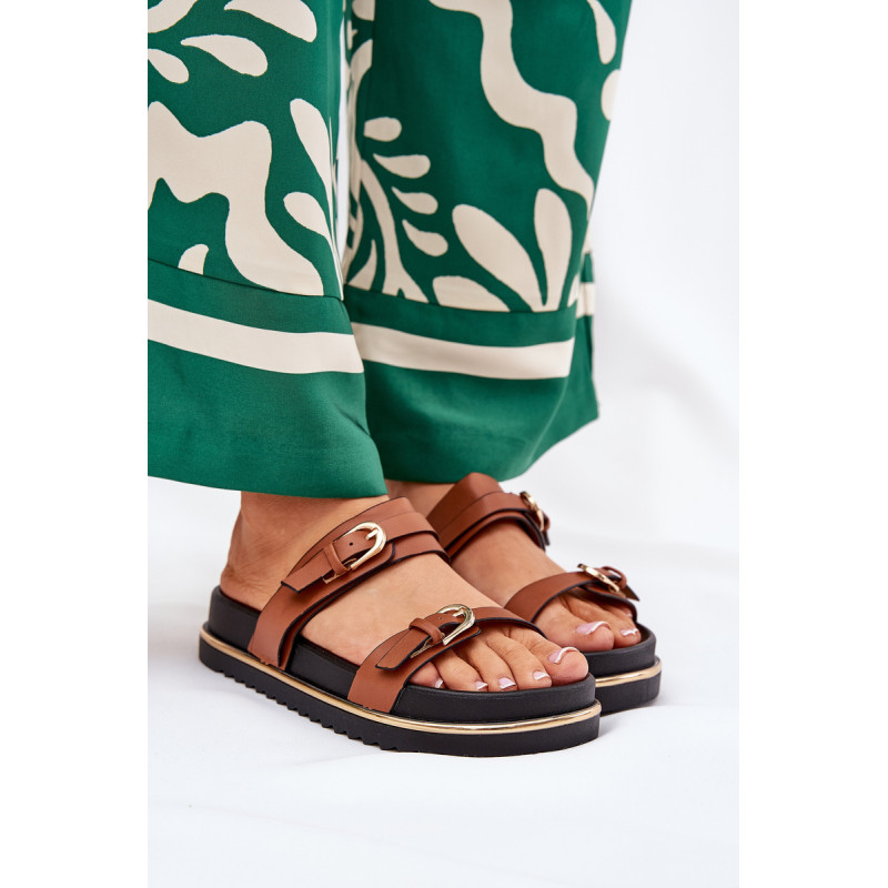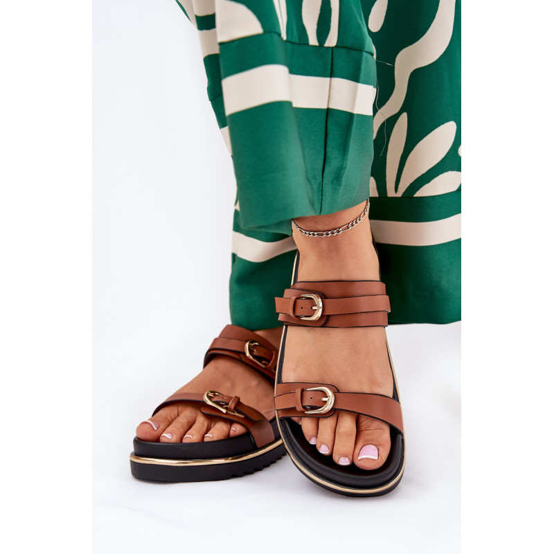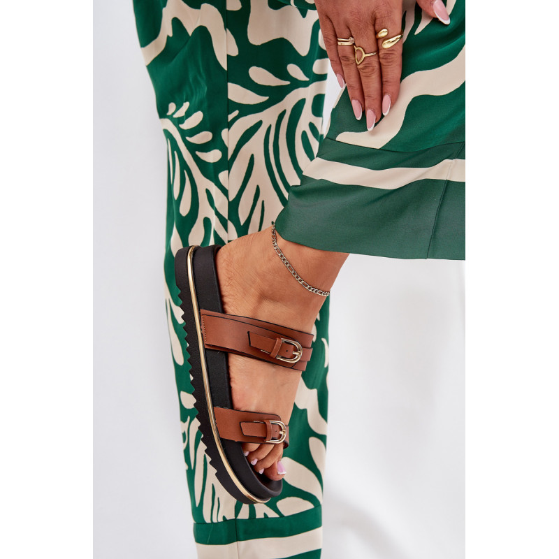 Madingi moteriški platforminiai sandalai, kurie sujungia komfortą su moderniu išvaizda. Priekyje yra dvi dirželiai su sagtimis, kurie prideda charakterio ir subtiliai pritraukia dėmesį. Platforma užtikrina žingsnio pasitikėjimą ir stabilumą visą dieną. Idealūs kasdieniam dėvėjimui, jie puikiai tinka tiek su suknelėmis, tiek su kelnėmis, sukurdami universalią bet kurio vasaros įvaizdžio dalį. Renkantis dydį, vadovaukitės dydžių lentele.